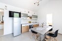 The original house includes a fully equipped kitchen, dining room, and living area overlooking the vineyards and sea. A comfortable bedroom is in the attic (ceiling height 1.5m) reachable by spiral stairs. The second, newly built house, was built following an authentic architecture with a modern interior design. Kitchen, dining and living area are overlooking the vineyards and the sea. Living room has a convertible sofa offering sleeping for 2 persons. The property has two private bathrooms with shower and toilet. Hair dryer is provided.