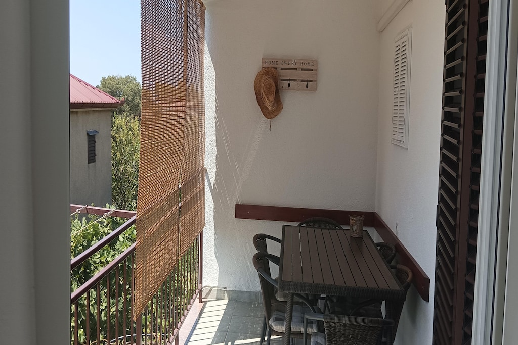 In eerste instantie had ik niet begrepen dat ons appartement zich bevond boven dat van de eigenaren, die de woning permanent bewonen. Daar kwam ik achter na het lezen van een andere recensie. Ik dacht als dat maar niet betekent dat we verplicht contact met ze zouden moeten hebben. Je gaat immers op vakantie om even weg te zijn van alle verplichtingen. Mijn zorgen bleken ongegrond. Bij aankomst werden we hartelijk ontvangen door het wat oudere echtpaar, die overigens geen Engels of Duits spreken. Met hun dochter en haar man daarentegen was het prima en vermakelijk converseren. Ons werd een zelfgebrouwen Kroatisch drankje aangeboden. De woning is op de eerste verdieping, voor ons drieën lekker ruim. Verwacht geen luxe alles is er, inclusief airco en koelkast, maar basic en functioneel. Een aantal aandachtspunten een conventioneel koffiezetapparaat en waterkoker zijn niet aanwezig. Men zet koffie en kookt water met behulp van een steelkannetje. De douche is even wennen daar de douchekop niet ideaal geplaatst kan worden in de houder. En de kalkmuur in één van de slaapkamers geeft af. Het balkon is heerlijk om tot in de late uurtjes te zitten. De villa bevindt zich in een doodlopend, rustig straatje Put Vitrenika. Let op dit straatje was ten tijde van ons verblijf niet op Google Maps/ Tomtom te vinden, maar een behulpzame medewerker van het plaatselijke VVV hielp ons verder. De tuin is dus ook niet van de huurder, tenzij je het prima vindt om deze te delen met de eigenaars, want je mag daar wel gebruik van maken. Tijdens ons verblijf werden we door de eigenaren nog verrast met zelfgemaakte koekjes, hebben we mee mogen lunchen aan een volle tafel en kregen we bij afscheid nog kadootjes mee. Erg attent! Het strand is op loopafstand hemelsbreed misschien 300m maar volg je de kortste route toch wel 600m lopen. Het dorpje en het strand kennen geen massatoerisme, wa't wij erg fijn vonden.