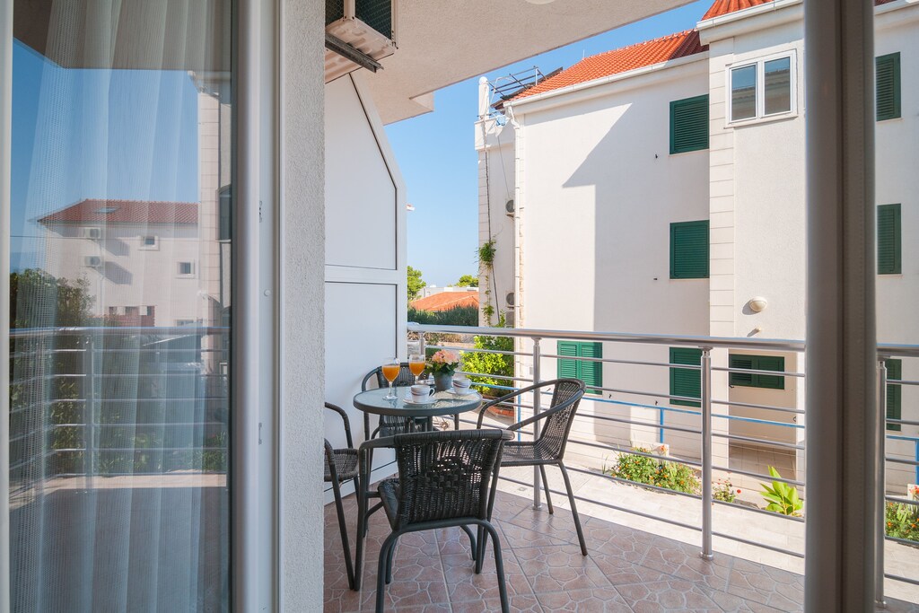 Furnished balcony with sea view is at guests disposal.