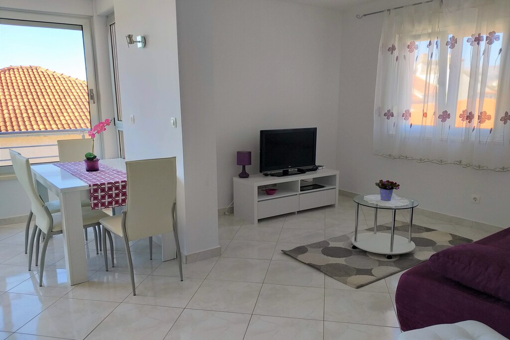 Unwind in Okrug Gornji at this inviting apartment for four, just 100 meters from the crystal-clear Adriatic Sea and sandy beach. Tucked into a peaceful coastal setting, this relaxing retreat is perfectly positioned with local restaurants, grocery shops, and public transport all within easy walking distance. Only 2 km away lies the historic town of Trogir, where guests can immerse themselves in centuries-old architecture, bustling markets, and a lively harbor promenade.