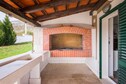 It has an outdoor pool with an overlook to the mountain hills surrounded by a large garden and kids's content. It offers a barbeque, terrace, outdoor shower, and private parking.