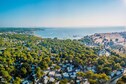 Caravan park on a long, sheltered bay near the towns of Nin and Zaton, on 100 acres of land lined with pine trees. The approximately two kilometers long and gently sloping beach with largely sandy seabed is ideal for children and non-swimmers. Since the summer of 2017, the family-friendly complex has a new swimming pool with a total of 7 pools, which extend over 2,100 square meters.