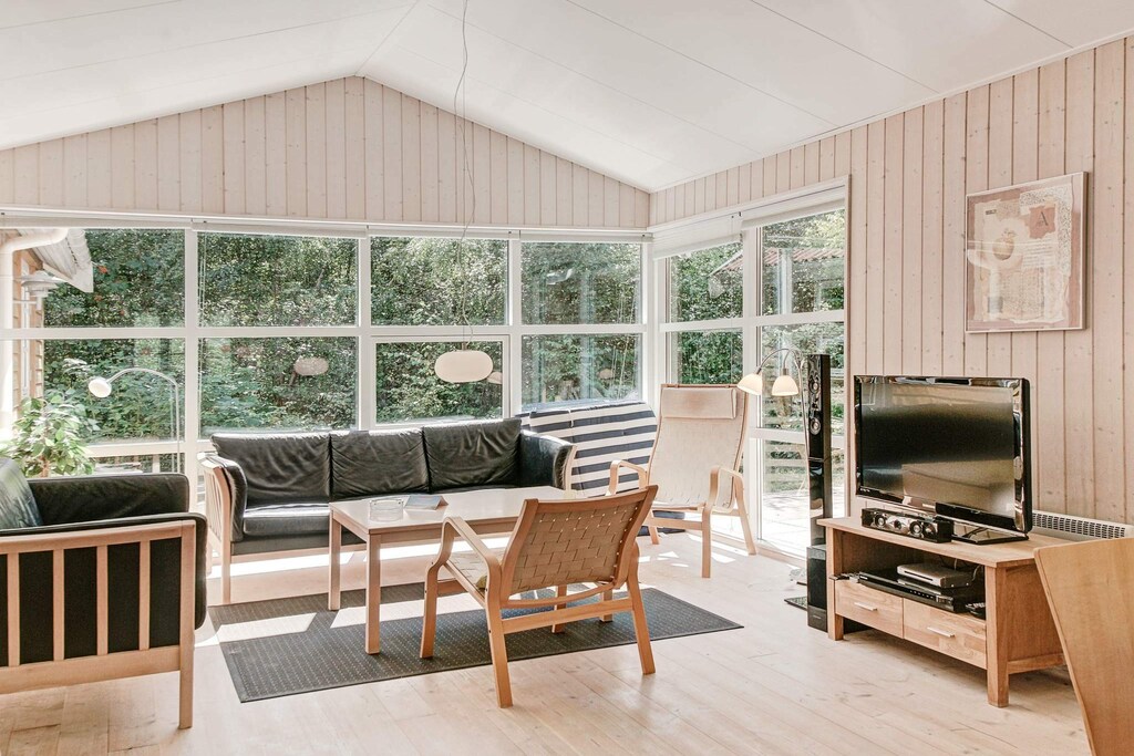 Holiday cottage on natural plot with trees. Modern, Scandinavian furnishing. Big modern bathroom with whirl pool, sauna and shower cubicle, wash bassin and WC. The big terrace is a great place to enjoy a long and sunny day. The distribution of the various rooms makes this cottage ideal for two families. At a short distance you have a child-friendly sandy beach with dunes and Sømarkshuse with herring smokehouse, bike rental and mini golf. Furthermore there is a 18-hole golf course approx. 3.5 kilometres away.