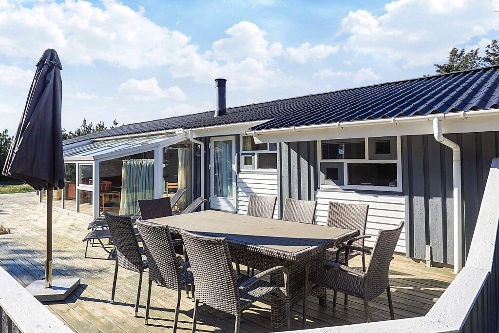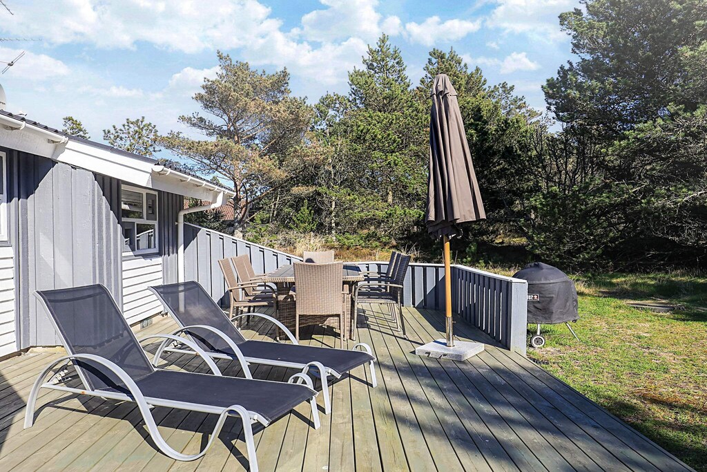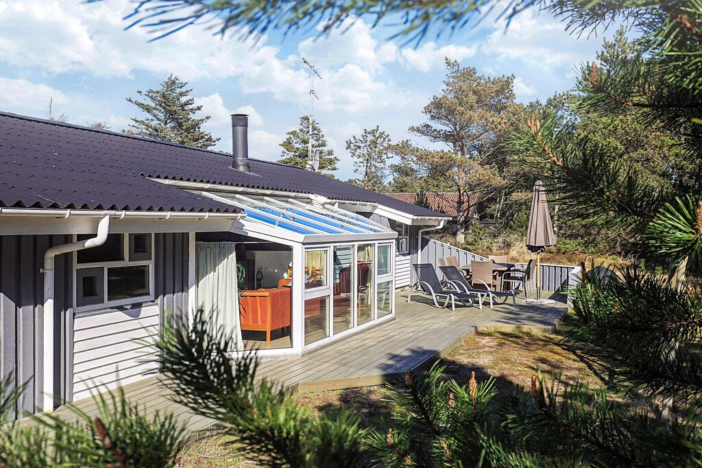 On a large sand dune plot with heathers, only 500 metres from the beach, you find this holiday cottage with a swimming pool. There are two bathrooms and a separate pool section in the house. In the lowered living room there is a wood-burning stove that you can use on cool nights while relaxing with a film. The dining room has an open connection to the kitchen, which you will find has all the domestic appliances you need. The house is surrounded by large terraces where you can enjoy the weather and the nature in privacy. There is a sandbox in the garden. During summer it is only 200 metres to a grocer's and café/restaurant.A refundable deposit might be charged closer to your check-in date. The security deposit ensures a smooth stay and covers any additional services or consumption charges.This deposit covers utilities consumed during your stay and any additional services that may be taken.The final amount will be adjusted based on actual meter readings, actual usage of extra services, and any remaining balance will be refunded within 21 days after checkout.This deposit simply acts as a prepayment for charges that you would anyways pay for, ensuring a seamless stay and check-out experience.