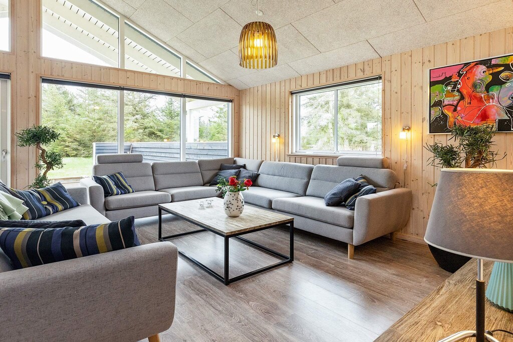 Sommerhuset er stort og er ligesom opdelt i to afdelinger, så flere familier godt kan være "opdelt" under samme tag, Desuden er sommerhuset udstyret med et flot og lyst aktivitetsrum med hems, bar, køleskab, dart, billardbord, bordfodboldbord, Wii, PlayStation som alt sammen er i fin stand og klar til brug, Sommerhuset rummer en hjemlig og hyggelig stemning, som får en helt ned i tempo, Der er en dejlig stor have til sommerhuset, Huset ligger ikke langt fra klitterne og stranden - så en frisk gåtur til stranden er oplagt, Til de kolde dage indeholder huset også et fint pool område med rutsjebane, boblebad og sauna,