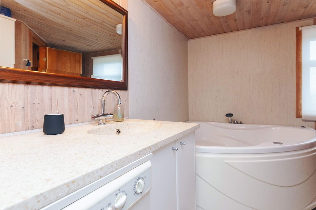 Holiday home with a unique location right down to the dunes and the sea by the child-friendly beach north of Ålbæk. You can enjoy a bath in the hot tub and a trip to the sauna after a walk in the area. The cottage is well furnished with a conservatory, where you can spend many hours and enjoy the fantastic nature. The house has a small well equipped kitchen from which there is a view of the dunes. There is a wood burning stove in the living room, which you can warm up on the cooler days. Combined washer and dryer. There are both east, south and west facing terraces, from where you can enjoy the sun's rays all day and listen to the sound of the sea.