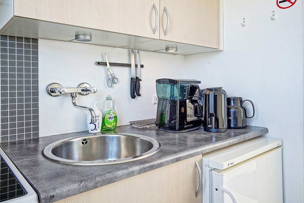 28 m² holiday apartment with sea view situated in Sandkås. Modern, Scandinavian furniture. From the living room there is access to a terrace with garden furniture. There is TV with German channels. The apartment is near to beach and cliffs. Big shared outdoor swimming pool, open from June 15th to September 1st.