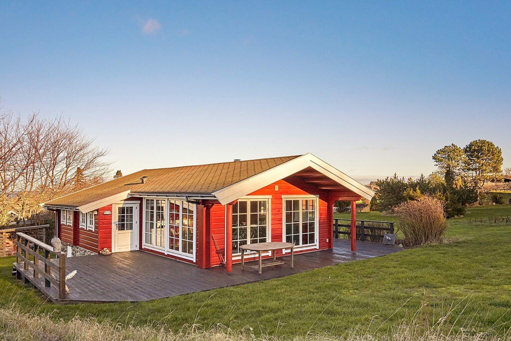 Log house located high in the idyllic town of Sandvig. From the living room and the terrace there is a formidable view of large parts of Hammerknuden. The cottage was built in 1995 and has undergone restoration in 2018 with a new kitchen and new windows. There is an open kitchen to the living and dining room with wood burning stove. Above the rooms there is a small loft. The cottage has a large, continuous terrace on three sides. The house is within walking distance to the town with shopping and restaurants but also to the sandy beach and the cliffs of Hammerknuden. From the house it is not far to the path that leads past the famous rock carvings on Madsebakke and on to Allinge. Not for rent to youth groups.