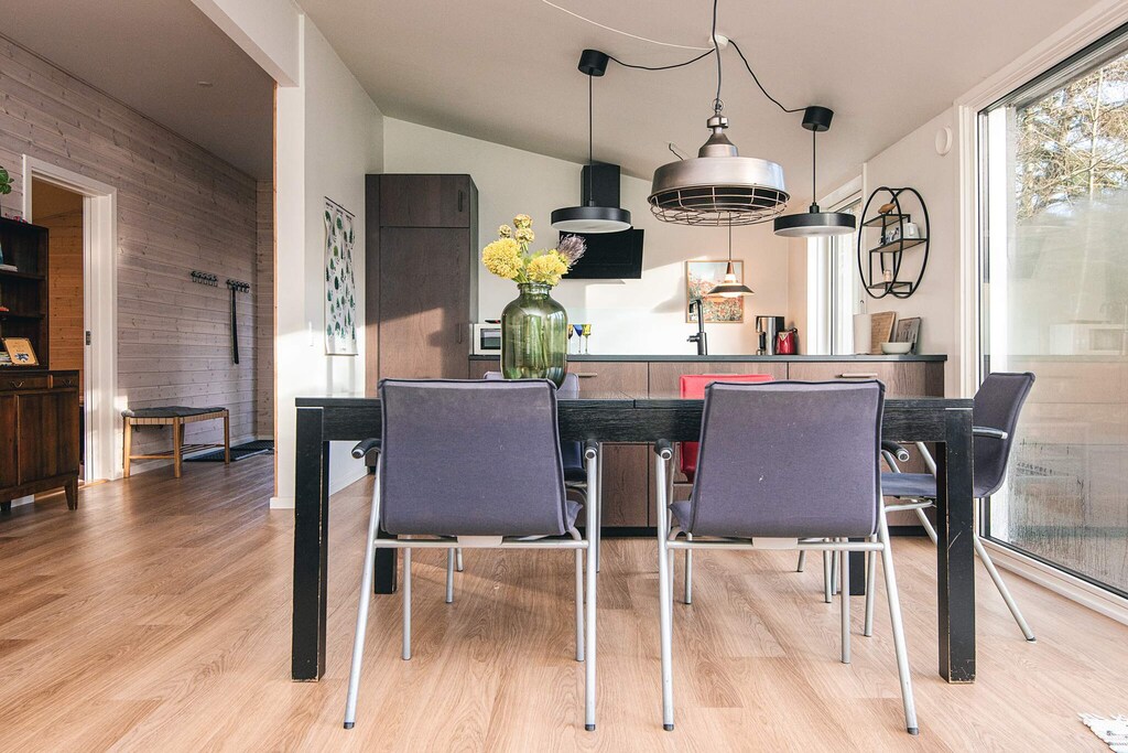 Nestled in the peaceful countryside near Truust, this modern holiday home offers a serene escape surrounded by nature. Designed for relaxation, it is a perfect retreat for families or small groups looking to unwind in a quiet and picturesque setting. The house features three comfortable bedrooms and a modern open-plan kitchen that flows seamlessly into the dining area and living room. Large floor-to-ceiling windows fill the space with natural light, creating a warm and inviting atmosphere where you can enjoy meals together, play games, or simply relax with views of the surrounding greenery. Step outside to discover a spacious natural plot that is both private and beautifully landscaped. Here, you can enjoy sunny afternoons, evening barbecues, and peaceful mornings with a cup of coffee. A small play area in the back offers space for ball games, making it ideal for families with children. For a cozy night under the stars, gather around the outdoor fire pit and enjoy a traditional campfire experience. This Truust holiday home combines modern comfort with a tranquil location, making it a great choice for those who love nature and quiet surroundings. With its bright interiors, open design, and inviting outdoor spaces, it provides the perfect base for exploring the region or simply unwinding in comfort. Rentals to youth groups are not permitted, ensuring a calm and relaxed environment for all guests.A refundable deposit might be charged closer to your check-in date. The security deposit ensures a smooth stay and covers any additional services or consumption charges.This deposit covers utilities consumed during your stay and any additional services that may be taken.The final amount will be adjusted based on actual meter readings, actual usage of extra services, and any remaining balance will be refunded within 21 days after checkout.This deposit simply acts as a prepayment for charges that you would anyways pay for, ensuring a seamless stay and check-out experience.