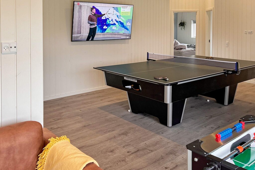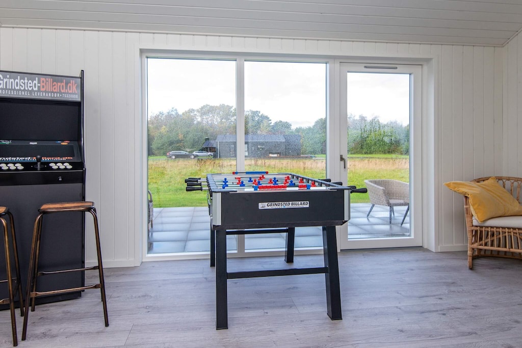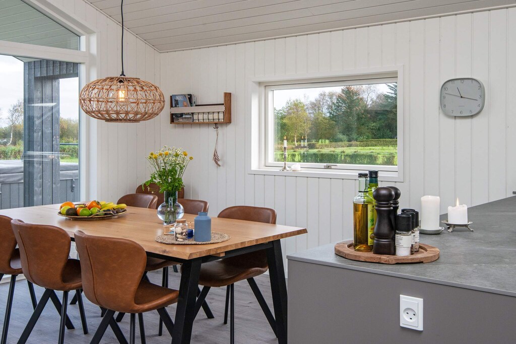 Activity house with outdoor whirlpool located with panoramic views of Kvie Lake in quiet and scenic surroundings. The cottage is extremely stylishly decorated, bright and inviting. All rooms are spacious and with good beds. The kitchen is furnished with all modern aids and in the living room the large window gives a magnificent view of nature. There is free wireless internet. The activity room is equipped with fun activities for all age groups. The area invites for walks on the paths around the lake. Not for rent to youth groups.