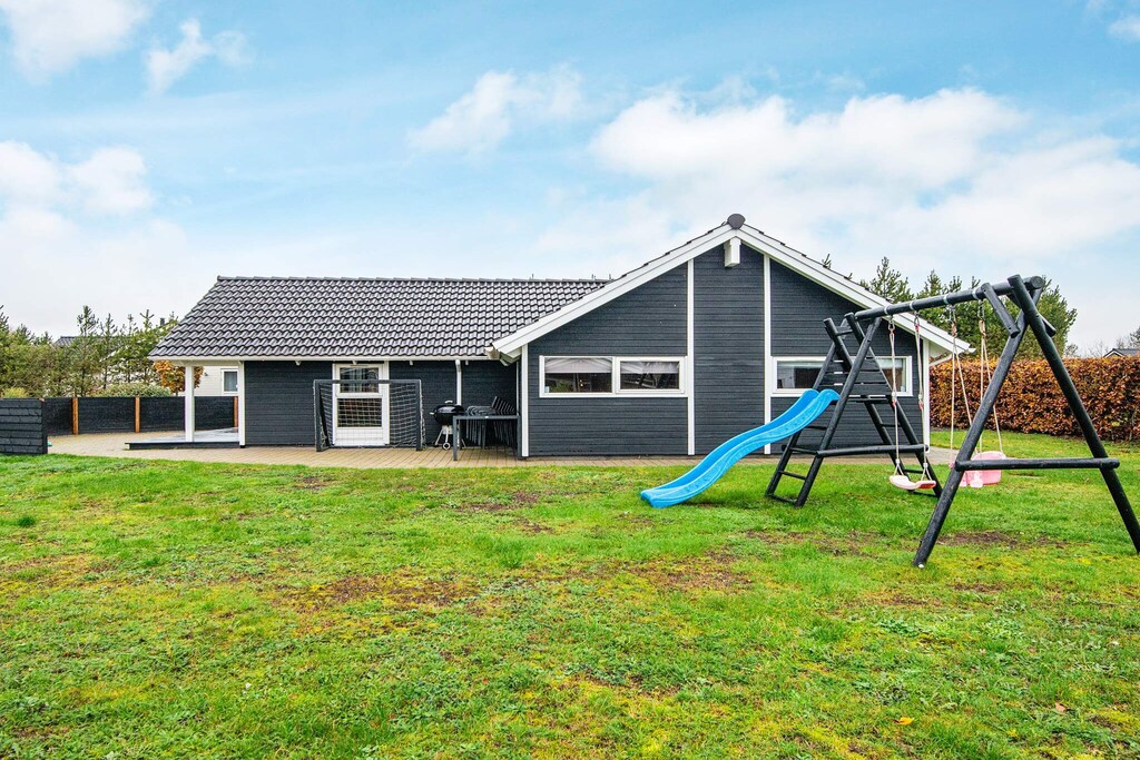 This inviting holiday home near Kvie Sø combines wellness, comfort, and family fun in one perfect package. Step inside and you’re welcomed by modern yet warm interiors – a spacious living room with recliners, a cozy wood-burning stove, and Chromecast TV for relaxed evenings together. The fully equipped kitchen makes cooking a pleasure, while the dining area is designed for long, shared meals. Wellness is at the heart of this home. One bathroom is fitted with both a sauna and a soothing whirlpool, creating your own private spa. The second bathroom, complete with washer and dryer, adds everyday convenience for longer stays. With four comfortable bedrooms (plus baby cot and high chair), the house easily hosts families or groups of friends, offering restful sleep and space for everyone. Outdoors, the garden becomes an extension of your holiday experience. Children can swing, kick a football, or explore the natural surroundings, while you enjoy the covered terrace with a good meal from the grill. The private, tree-framed plot gives you both space and tranquility – perfect for soaking up the fresh air. The location adds to the charm: just 100 m from the beautiful and child-friendly Kvie Lake, where swimming, fishing, and nature walks await. Restaurants, shops, and local attractions are all nearby, and you’ll also enjoy free access to a water park and daily bowling – extra touches that make every stay more memorable. Whether it’s wellness, nature, or family adventures, this holiday home offers a little bit of everything – wrapped in comfort, style, and space to relax.A refundable deposit might be charged closer to your check-in date. The security deposit ensures a smooth stay and covers any additional services or consumption charges.This deposit covers utilities consumed during your stay and any additional services that may be taken.The final amount will be adjusted based on actual meter readings, actual usage of extra services, and any remaining balance will be refunded within 21 days after checkout.This deposit simply acts as a prepayment for charges that you would anyways pay for, ensuring a seamless stay and check-out experience.
