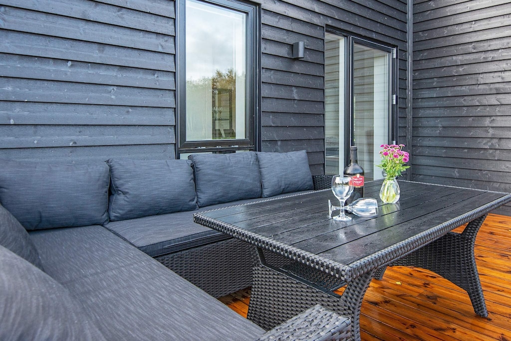 Holiday home with whirlpool and panoramic views of Kvie Lake. The house is extremely stylishly decorated, bright and inviting. All rooms are spacious and with good beds. The kitchen is furnished with all modern aids and in the living room it gives the large window area a magnificent natural view. There is free wireless internet. Enjoy the terrace in the good garden furniture, or take a refreshing bath in the outdoor hot tub. Not for rent to youth groups.