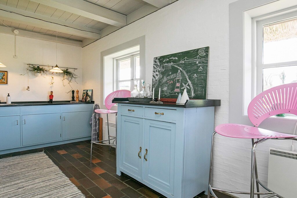 Thatched cottage located at 2500 m & # 178; large natural plot with a view of the sea at Båring cove. On the ground floor there is a bright, combined living / dining room with a view of the water and direct access to the house terrace. The living room is furnished with furniture in good Danish quality, wood stove, flat screen TV and radio with CD player. The kitchen department has i.a. convection oven and refrigerator with 56 l freezer. There are two bedrooms. The house has a spacious bathroom with shower. There is a further bathroom in a separate building, where there is also both a washer and dryer. On the 1st floor there is a large, bright living room with TV, and at one end of the large living room there is a double bed. Open terrace with garden furniture and there is both a regular barbecue and a gas grill. The plot borders a large open area. Not for rent to youth groups.
