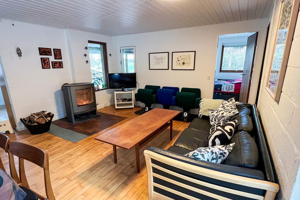Well-appointed and charming holiday home located in scenic surroundings. The house has three bedrooms, each with a comfortable double bed. In addition, there is a small bathroom with shower and toilet and a spacious and bright kitchen with plenty of space for cosy gatherings. The living room is furnished with a fireplace, sofa arrangement and Smart TV with Chromecast, making it easy to stream and enjoy cosy evenings. The house is energy-efficiently heated with an air-to-water heat pump. The holiday home has terraces on both sides, so you can always find shelter and enjoy the sun. In the immediate area there are several eateries, a campsite with a water park, and roadside stalls with seasonal fresh strawberries, potatoes, fruit and vegetables. You can also buy firewood for the stove all year round. Please note that the house is not available for youth groups or craft groups.A refundable deposit might be charged closer to your check-in date. The security deposit ensures a smooth stay and covers any additional services or consumption charges.This deposit covers utilities consumed during your stay and any additional services that may be taken.The final amount will be adjusted based on actual meter readings, actual usage of extra services, and any remaining balance will be refunded within 21 days after checkout.This deposit simply acts as a prepayment for charges that you would anyways pay for, ensuring a seamless stay and check-out experience.