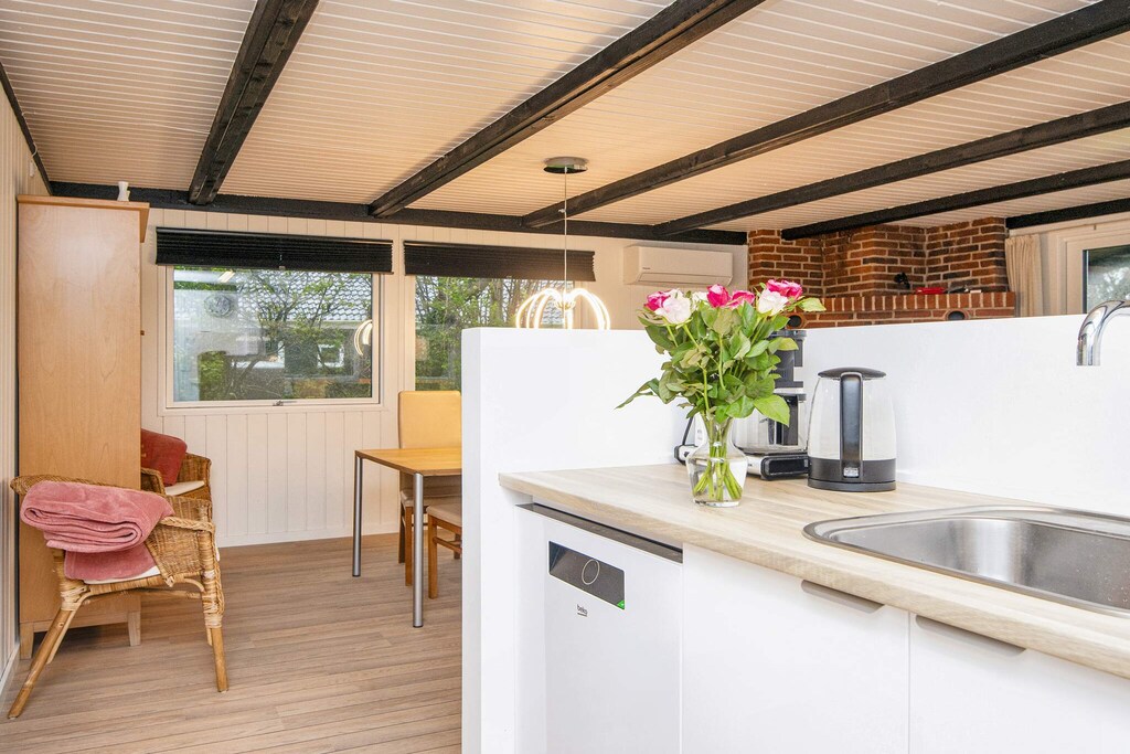 Das Haus ist sehr nah an der Ostsee gelegen und mit einer fantastischen Terasse mit Blick auf das Meer. Bequeme Terassenmöbel machen das Sitzen dort sehr angenehm. Die Umgebung ist sehr ruhig gewesen (Ende August). Ein schöner Weg verbindet die verschiedenen kleinen Strandabschnitte. Die Sauna im Haus nutzten wir gerne, da das Wetter sehr wechselhaft war. Leider schloss die Saunatür nicht vollständig. Die Küche ist sehr gut ausgestattet und der Raum großzügig mit dem Wohnzimmer verbunden.