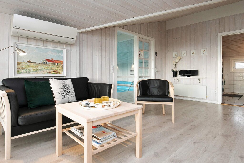 Holiday cottage renovated in 2011. The living room has wooden floors, the bedrooms have carpets. There are two bathrooms with underfloor heating and shower cubicles. No letting to youth groups. Open plan kitchen with a dishwasher, microwave, cooker with ceramic hubs and a freezer. From the living room you have a view to the North Sea. The living room has a wood-burning stove, cable-TV, DVD player and stereo set system with c-player. The swimming pool room has a pool (5,0 x 3,0 x 1,5) with a swim coach, a whirlpool for two persons and a sauna. There is a washing machine and dryer. The house is located on a large, natural plot with a partly covered terrace with garden furniture and a swing and carport ca. 50 metres from one of the best beaches in Denmark.A refundable deposit might be charged closer to your check-in date. The security deposit ensures a smooth stay and covers any additional services or consumption charges.This deposit covers utilities consumed during your stay and any additional services that may be taken.The final amount will be adjusted based on actual meter readings, actual usage of extra services, and any remaining balance will be refunded within 21 days after checkout.This deposit simply acts as a prepayment for charges that you would anyways pay for, ensuring a seamless stay and check-out experience.