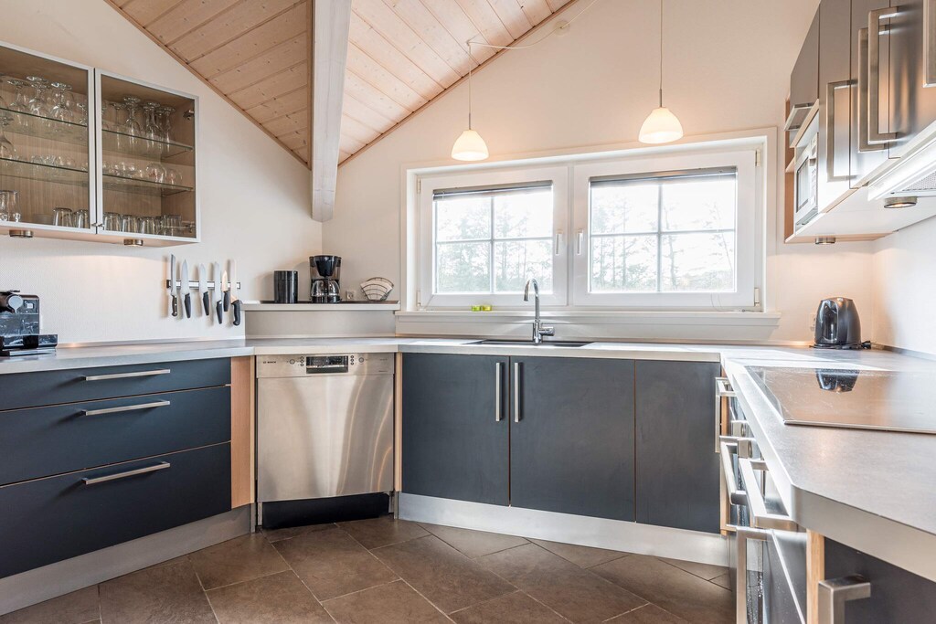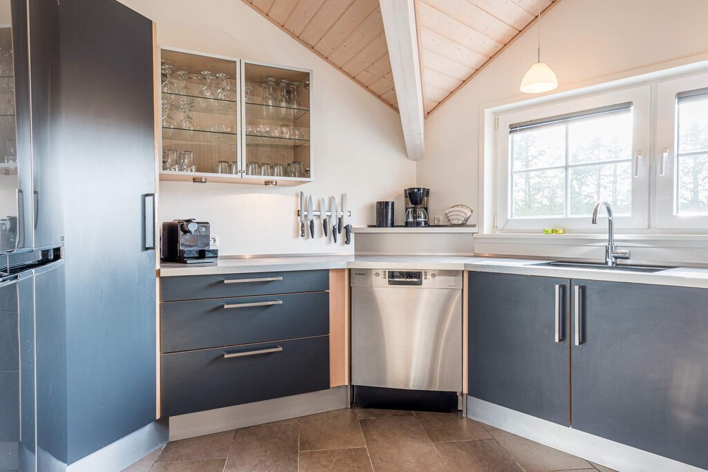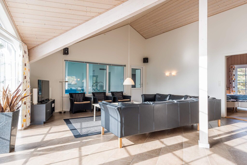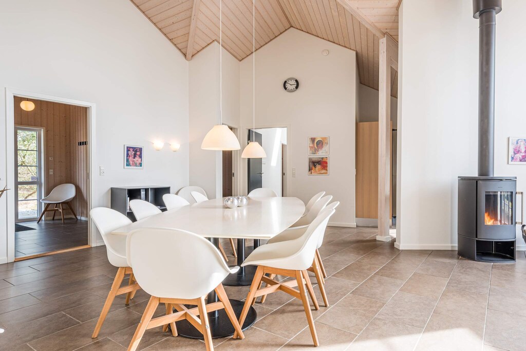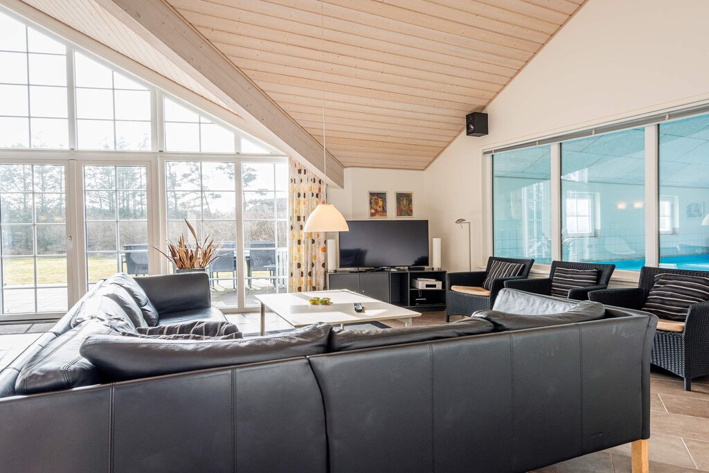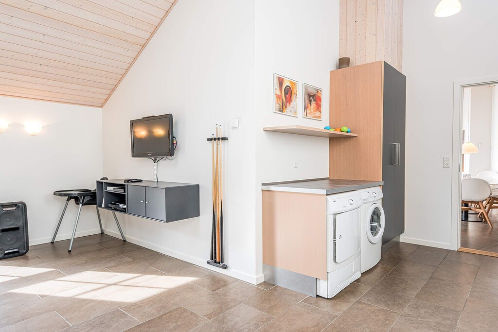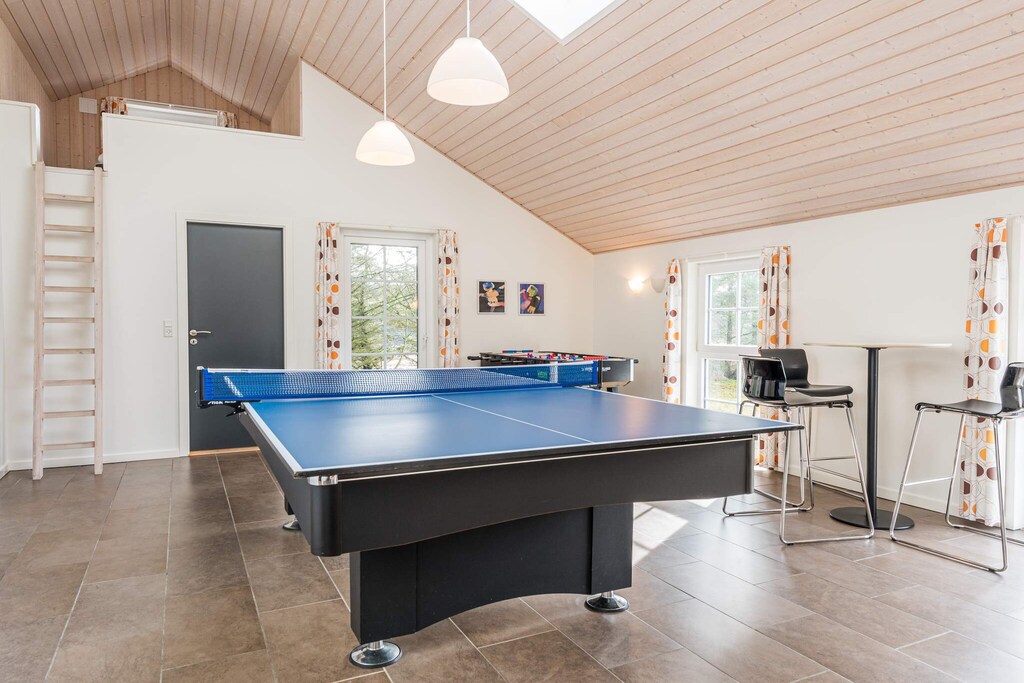 NO YOUTH GROUP - ACTIVITY ROOM - This is really a beautiful cottage with all kinds of amenities. The house was built in 2011 and is located on a lovely natural plot just 350m. from one of Denmark's best beaches. In this house, no one will have a hard time making time go by. There is a super nice pool with counter-current of 22 m2, stand spa for 4 people and sauna / steam cabin in the pool area. If you get tired of swimming, there are opportunities to play pool, table tennis or table football in the large beautiful activity room. With its 6 rooms and 3 bathrooms, the house invites to family reunions or just to friends who want to holiday together. There really is room to move here. The kitchen, which is equipped with a large American fridge / freezer, is in open connection with the spacious living / dining area, from which there is also a view of the pool room. Furthermore, the living room is equipped with a really nice wood stove that provides both warmth and coziness. There is underfloor heating throughout the house. Free final cleaning!