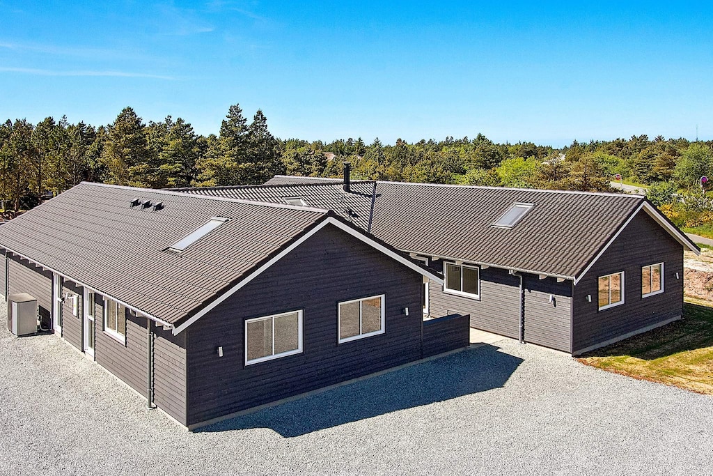 A well-arranged holiday cottage with a swimming pool section and activity room. It has everything you need for your holiday. Located in Blåvand. The impressive pool section has a 18 m² large pool with a water slide and counter-current system, lovely whirlpool for 8 people and a large sauna. The house is highly spacious and well-dimensioned, with 2 separate sleeping sections with bathrooms. There is also a large mezzanine, popular for children. The natural gathering spot is the large and architect designed combined living room and kitchen. The kitchen is well-arranged and has room for several chefs at the same time. There is also a wine cooling cabinet. The living room is tastefully arranged with comfortable furniture and a wood-burning stove. On the other side of the living room you find the large activity room with a bar, dart and a pool table. There is a large terrace (partly covered) where you can enjoy the Danish summer and comfortable furniture. There are swings and sandbox for children. The house is opposite Denmark's largest mini-golf facilities and only a short walk from a charming town with good restaurants and shops. No letting to youth groups.