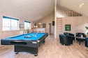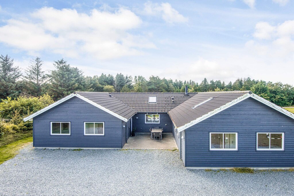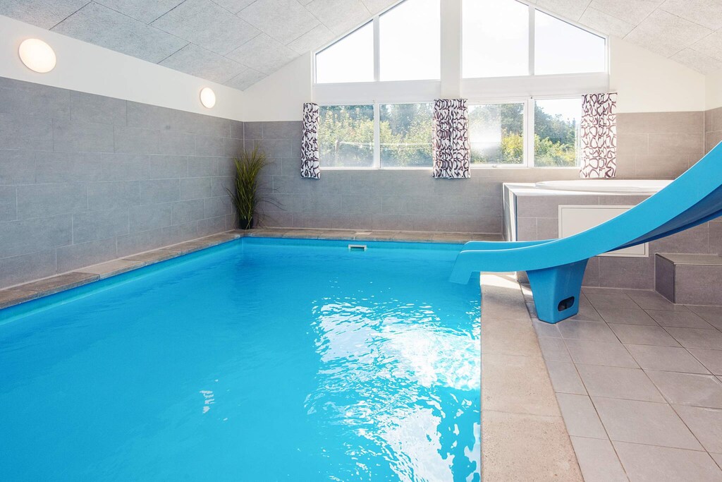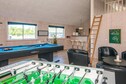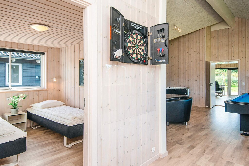 A well-arranged holiday cottage with a swimming pool section and activity room located in Blåvand. It has everything you need for your holiday. The impressive pool section has a 18 m² large pool with a water slide and counter-current system, lovely whirlpool for 4-6 people and a large sauna. The house is highly spacious and well-dimensioned, with 2 separate sleeping sections with bathrooms. There is also a large mezzanine, popular for children. The natural gathering spot is the large and architect designed combined living room and kitchen. The kitchen is well-arranged and has room for several chefs at the same time. There are 2 ovens, to fridge-freezers plus an extra fridge at the bar, 2 dish washers, 2 coffee machines and a large cooker (induction). The dryer is also placed in the kitchen. The living room is tastefully arranged with comfortable furniture and a wood-burning stove as well as a 65'' flatscreen TV. On the other side of the living room you find the large activity room with a bar, dart and a pool table. There is also Apple TV and 55" Smart TV as well as access to Google Chromecast. PlayStation4 available (bring your own games). There is a large terrace (partly covered) where you can enjoy the Danish summer and comfortable furniture. Here you will find an outdoor kitchen with a wash basin for cleaning fish and then preparing them on the gas grill. There are swings and sandbox for children. The house is opposite Denmark's largest mini-golf facilities and only a short walk from a charming town with good restaurants and shops. Payment for consumption, and deposit must be paid in cash to the landlord at the house. No letting to youth groups.