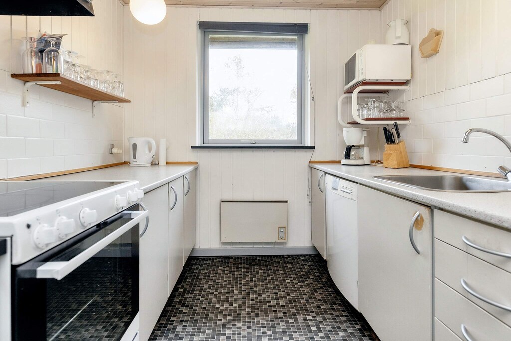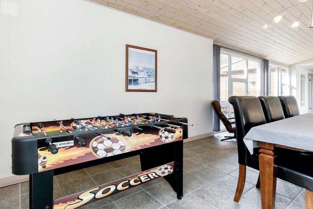 Are you two families or do you just like space, then this cottage by Blåvand is the obvious choice. The cottage is two houses in one, added and rebuilt in 2005. There is a large master bedroom, a huge bathroom with whirlpool and a bright living room with a sloping ceiling. In the original part of the house there are three good bedrooms, shower and toilet, a slightly older kitchen and a cozy fireplace room and dining area. In the house there are of course also modern amenities such as dishwasher and washing machine and for those who love activities there is table football. The house is well and secluded on the large natural plot, where you can find sun, shade or shelter throughout the day. There is a large swing set and sandbox for the little ones. The house's carport is a natural extension of the entrance area and also serves as a drying area, and can be quickly converted into an extra terrace if desired. Not for rent to youth groups.