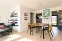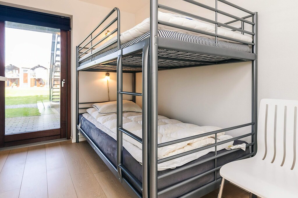 Apartment located approx. 300 m from child-friendly beach and one of Funen's largest marinas. The apartment is brightly decorated, and from the living room there is a view of the area with i.a. lakes and a beautiful nature. There are two spacious terraces with garden furniture. From the two bedrooms there is access to one terrace, and from the living room you have access to the south-facing terrace. Kitchen with i.a. dishwasher and built-in hob / oven in stainless steel. The apartment is located in the heart of the many holiday options that Bogense offers. Approx. 300 m from the house you will find a swimming pool with hot water pool and slide. Not for rent to youth groups.
