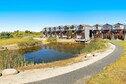 Små balkoner på 1, Salen til begge sider - den ene mod vandet var i vindsiden med eftermiddagssol mens den mod søen var i læ og med morgensolen, Begge med skøn udsigt, / / God beliggenhed med kort afstand til både strand, Marina, by, svømmehal og indkøb, / / Mange gode legepladser indenfor få hundrede meter
