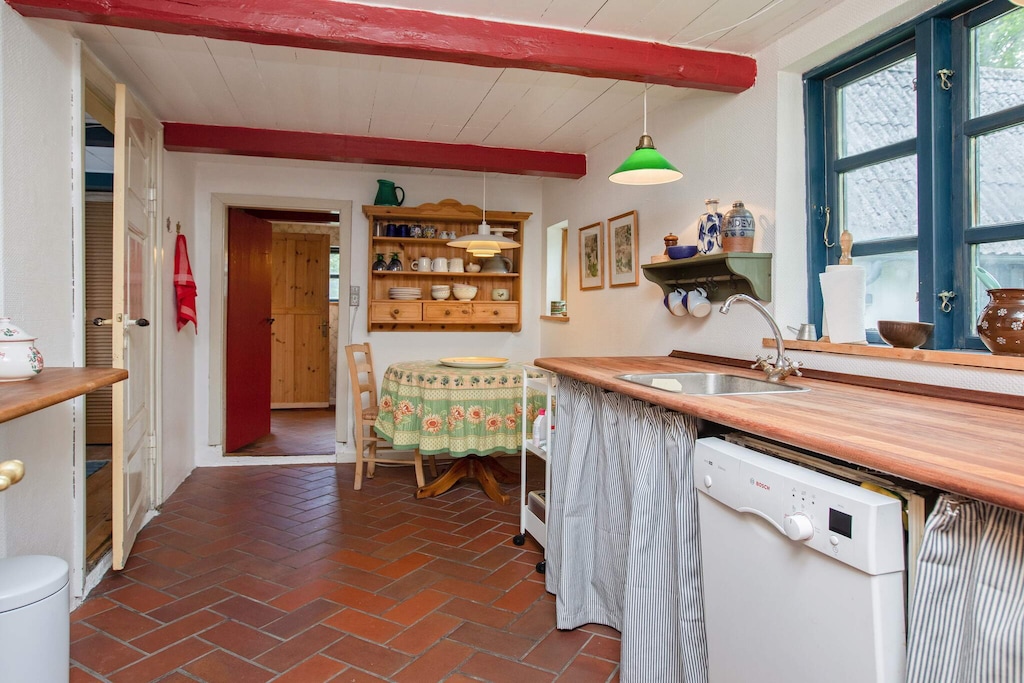Lief echt Deens huisje, van alle gemakken voorzien qua inventaris en een fantastische tuin. Supermarkt dicht in de buurt. De bedden waren standaard boxprings zónder matrassen. In het hoofdhuis lag er een dunne topper op, echter op het bed in het bijgebouw niets. Het linnenpakket wat te huren was, is voor 1 persoonsbedden (er waren buiten de bedbank 2/2-persoonsbedden), dus dit is echt een minpunt. Pas de bedden aan en dan slaap je tenminste goed, ook al waren we door de lichtdoorlatende gordijnen wel elke dag om 6 uur wakker. 😉 Buiten de bedden hebben we genoten van de plek én het land. De schoonmaak is via Belvilla iets van € 130, ik heb het zelf gedaan, maar de vloer wordt niet altijd goed gedaan denk ik omdat m'n dweil zwart was.