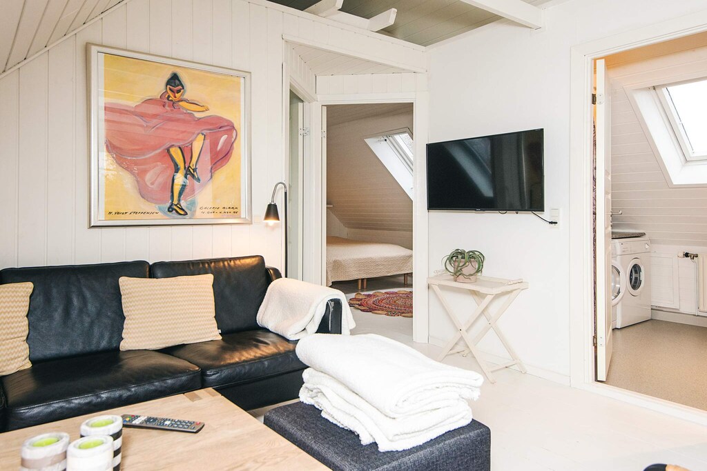 Not far from Høll bathing beach is this bright 1st floor apartment. At the front door there is a covered terrace with garden furniture and nice views of the area. The apartment many good facilities, good beds and nice furniture. Note that all energy consumption is included in the price. Not for rent to youth groups.