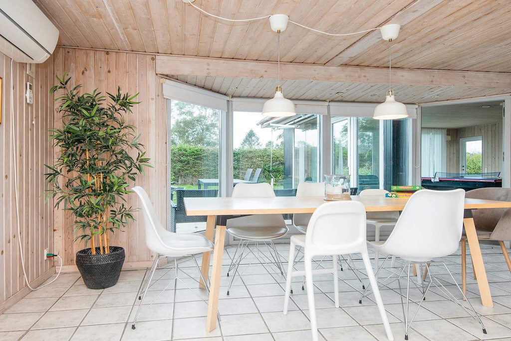 Close to the bathing beach in Høll, this holiday home is located in a child-friendly area with a good lawn. The house is well furnished with i.a. large activity room. From the living room there is access to the terrace where the sun can be enjoyed. Not for rent to youth groups.