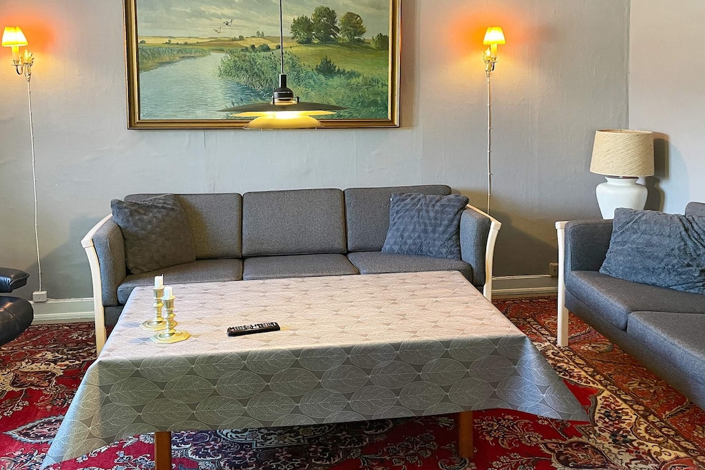 Holiday home located approximately 200 meters to the forest by Stødby Strand by a small lake, which is not fenced. There are activity rooms with various exercise equipment including rowing machine. There is free internet and TV with international channels. Outdoors you will find barbecues and good garden furniture. The cottage is a beautiful, square yellowstone building on two floors with an unusually high roof construction. And it is actually up under the rafters that the background for the particular building is located, to this day. Here is a 2000 l water tank in iron camouflaged in a box with room for a thick layer of straw insulation. The tank was connected to the farm's large well, and as the highest point on the property, the water was formerly led from the tank and around the farm's stables and dwellings. Built in 1915, the water tower was the entrance of modern times to a degree that can be difficult to understand today, where running water is a matter of course, in line with breathing. Back then, it was a minor revolution to be able to drain cold well water directly from taps, both in the barn and in the kitchens. Instead of the hard work of pumping water out of the well and into buckets dragging it to cattle and kitchen sinks. In addition to the water tank, it also housed the Tyendeboligen, as the architect in the terminology of the time described his work, space for the feed master and his family on the ground floor, while three rooms on the first floor were housing for the farm men. On the yellow brick of the water tower, a wealth of scratched first names and initials testify to the lively activity of the past on the farm, and that an outbuilding was reserved for Polish tools, almost tells its own story of beets and Polish labor on the farm, which was built back in 1886. In 2020, the house has undergone a thorough restoration, so that in future it will appear as a holiday home for tourists. Not for rent to youth groups.
