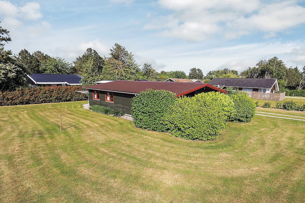 Holiday home in the 1st row from the beach located on a natural plot. Both open and covered terrace, where you can enjoy the sun and grill in the evening. Swing and sandpit for the kids, as well as 2 highchairs. Mattresses are new in 2021. There is underfloor heating in the bathroom. Carport on the grounds. Close to eatery and miniature golf.