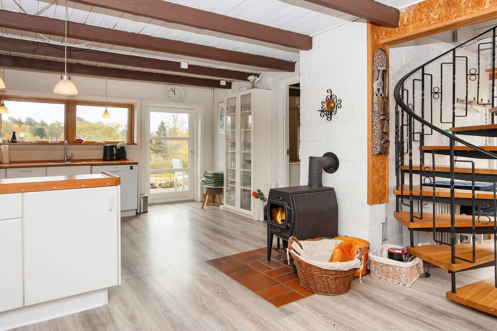Completely renovated holiday home located in a beautiful natural area not far from the sea by Øer. When you sit on the balcony on the 1st floor, you can look out over the water while enjoying your coffee. The house has on the ground floor kitchen, dining area and a bedroom and bathroom. On the 1st floor there are two more bedrooms and living room with a view. The grass is newly sown in the summer of 2019 but there will be an opportunity to sit outside and enjoy the peace and quiet. If you are looking for a good hike, there are also many opportunities open here. Not for rent to youth groups.