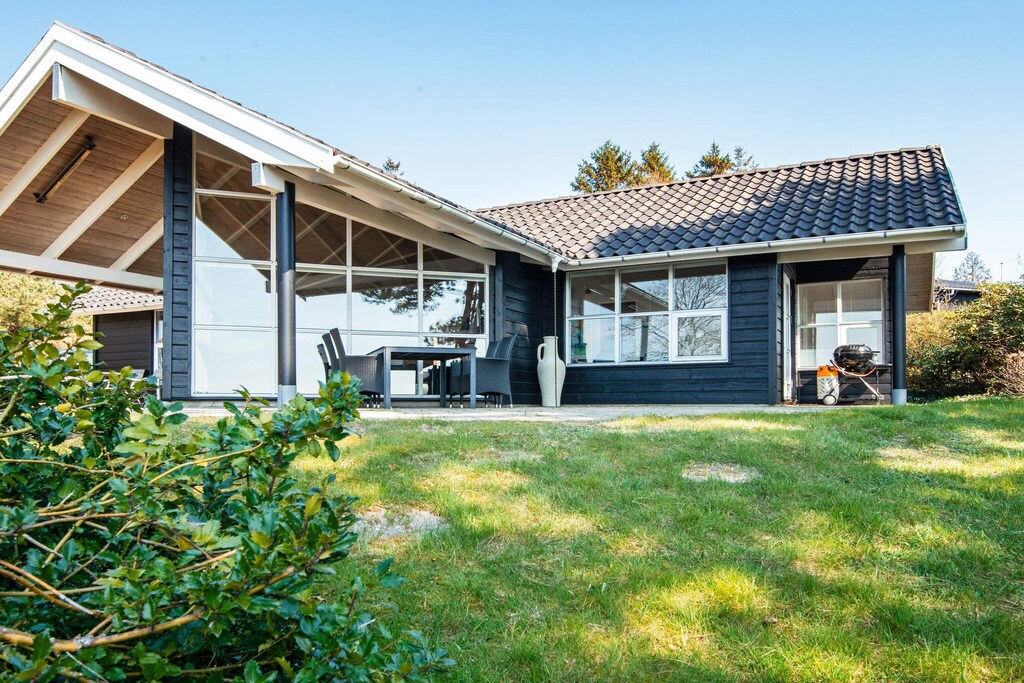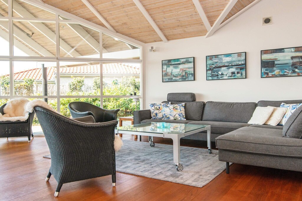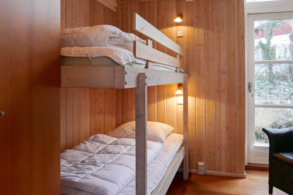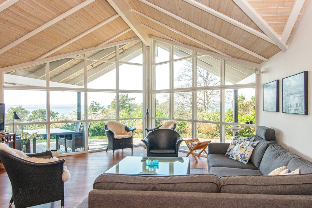 This high-rise cottage offers a rare good view of Ebeltoft Vig. You can sit in the living room and look out at the water and the whole beautiful area. The cottage is secluded at the end of a small slip road. Inside, the house is furnished in Scandinavian style and with a nice window area in the kitchen. The kitchen is in close connection with the dining room, so here everyone can have fun together no matter if they are cooking or playing games. In the living room there is a window section all around, which offers a view of the sea. Outside there is both a covered terrace and an open terrace, so here is the opportunity to move according to the sun and the season. There is also a barbecue, which can provide the food and coziness as soon as the weather allows. Not for rent to youth groups.