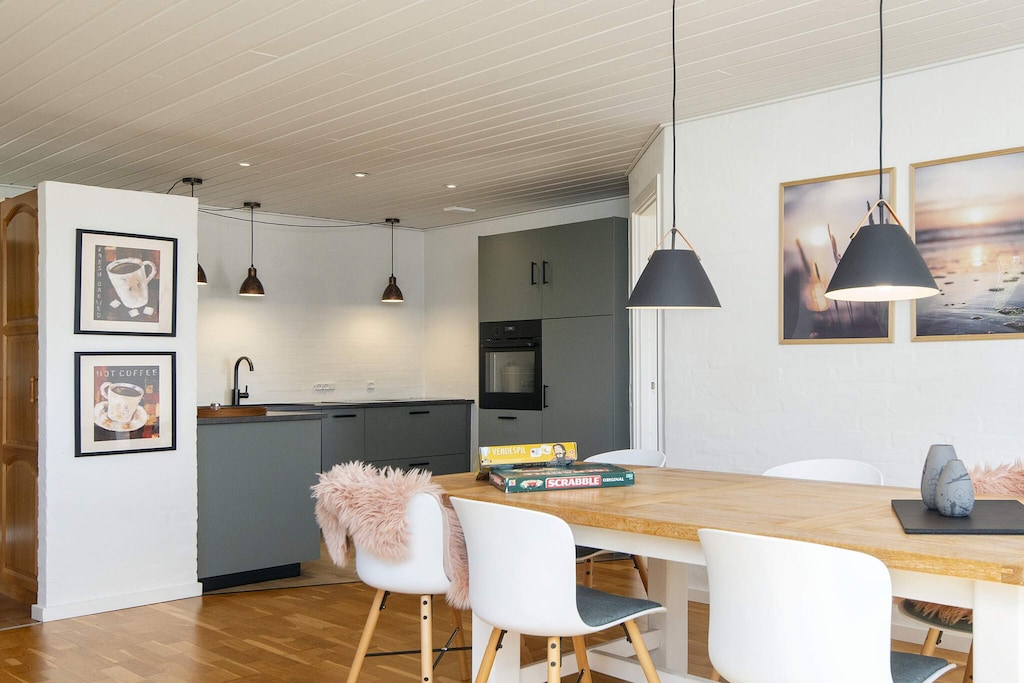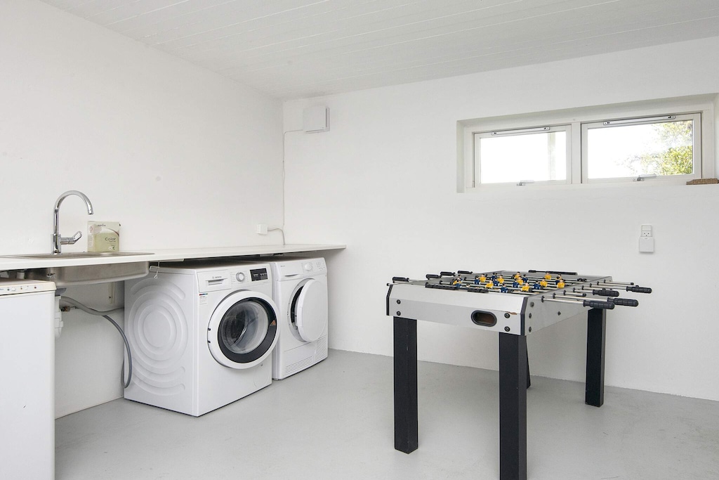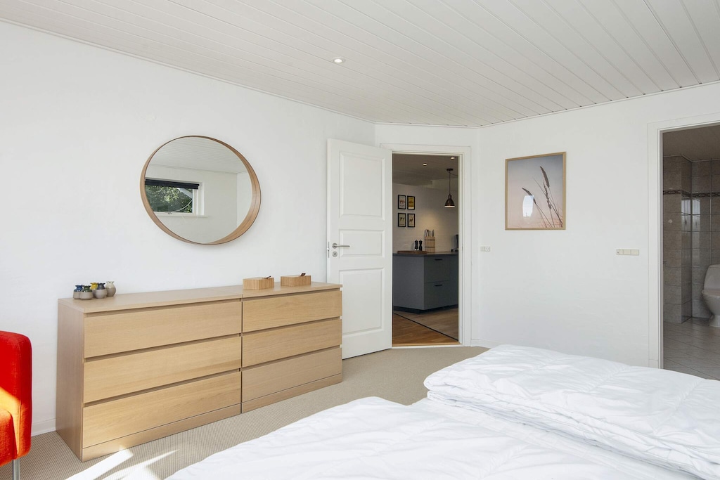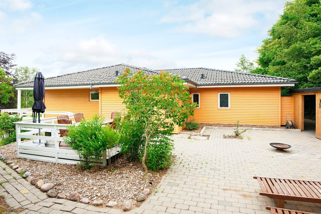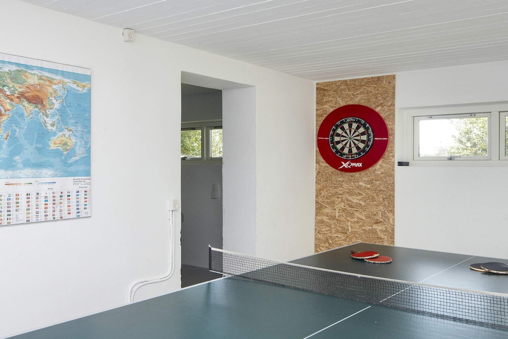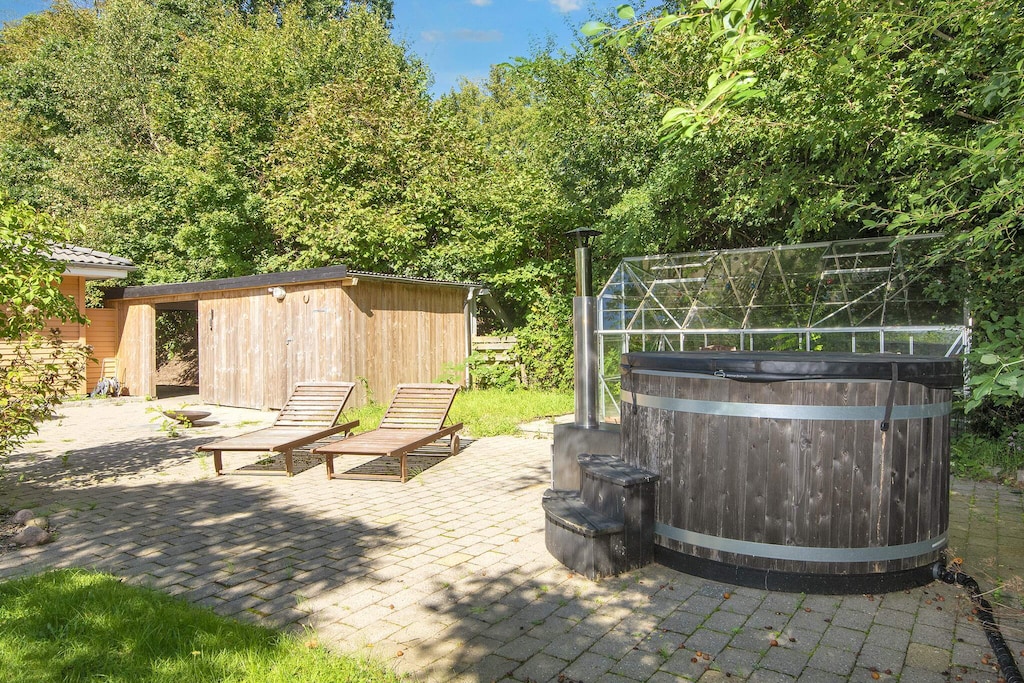 Just a short stroll from the sandy beach at Lyngsbæk, this inviting holiday home combines wellness, comfort, and sea views in a peaceful setting. From every terrace – and even while relaxing in the outdoor hot tub – you can enjoy sweeping views of the water, making it the perfect spot to start or end your day. Inside, the home is cleverly divided into two wings. To one side, you’ll find the open-plan kitchen that flows into a spacious dining area with a cosy wood-burning stove, ideal for shared meals and long evenings together. Behind this lies a generous bedroom with its own en-suite bathroom complete with a whirlpool tub for added relaxation. The other wing of the house offers three additional bedrooms, a guest toilet, and a bright living room with another wood-burning stove – a welcoming space for family gatherings or quiet moments with a book. Practical facilities such as a laundry room add convenience, while the activity room invites both children and adults to enjoy games and fun together. With multiple terraces, you can always find the perfect spot for sunshine, shade, or simply taking in the sea views. The surrounding area is peaceful, with the beach just a short walk away – ideal for daily swims, sandcastle building, or tranquil seaside walks. A wonderful retreat for families or groups who want both relaxation and activities close at hand. Please note: not rented out to youth groups.A refundable deposit might be charged closer to your check-in date. The security deposit ensures a smooth stay and covers any additional services or consumption charges.This deposit covers utilities consumed during your stay and any additional services that may be taken.The final amount will be adjusted based on actual meter readings, actual usage of extra services, and any remaining balance will be refunded within 21 days after checkout.This deposit simply acts as a prepayment for charges that you would anyways pay for, ensuring a seamless stay and check-out experience.