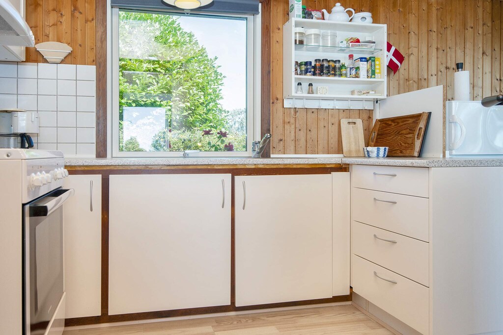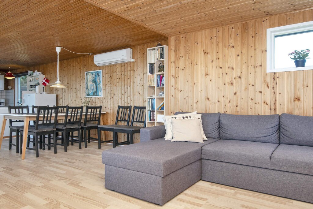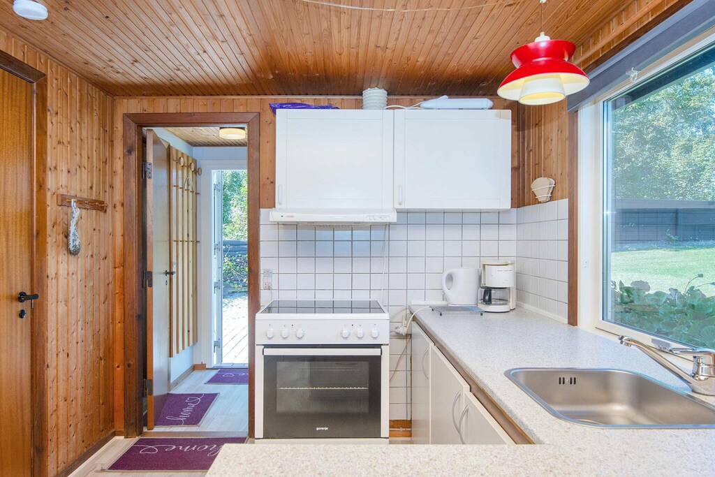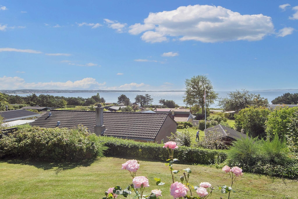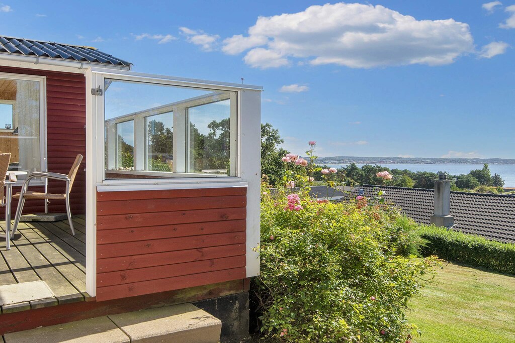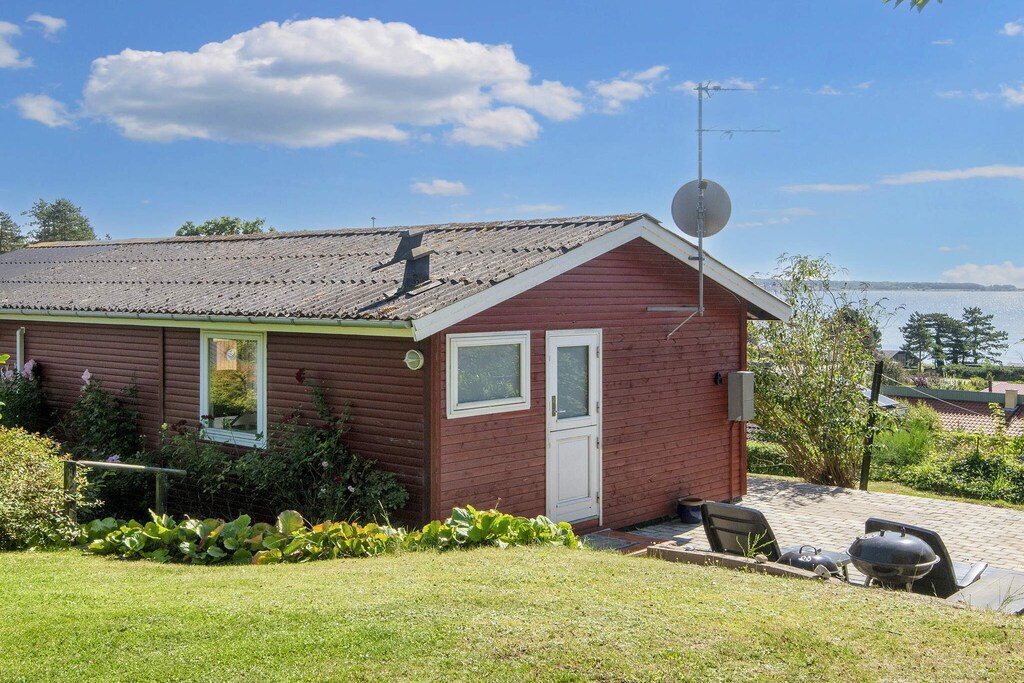 High and very beautifully situated cottage with one of the city's most beautiful views of Ebeltoft Vig. The house is for the family who wants peace and quiet while with the beautiful view of the sea. The kitchen is in open connection with the living room, so everyone can participate in the cosiness while cooking. If you feel like grilling, it is possible on the terrace. The house has a small toilet with hand shower. The house's terrace is sheltered and therefore you can sit and enjoy the view and the sun. Not for rent to youth groups.