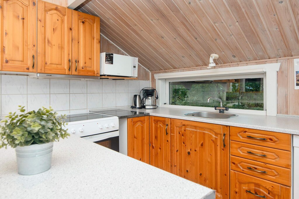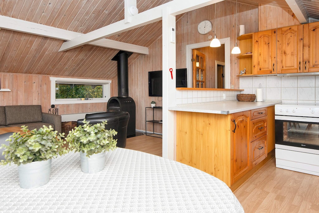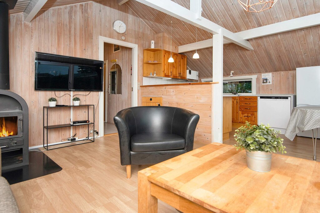 Holiday home located in the beautiful Fuglslev. Here are all the opportunities to slow down and enjoy the peace and quiet inside the forest. Living room and kitchen in one, so no matter if you have to cook or play games, everyone can participate at the same time. The house is decorated with a personal touch. There is a covered terrace where the family can grill dinner and sit and have fun. The house is located at the end of a slip road and as a result not many people pass by. Not for rent to youth groups.