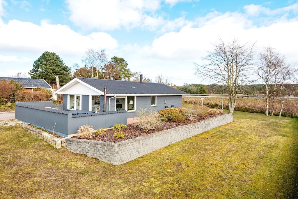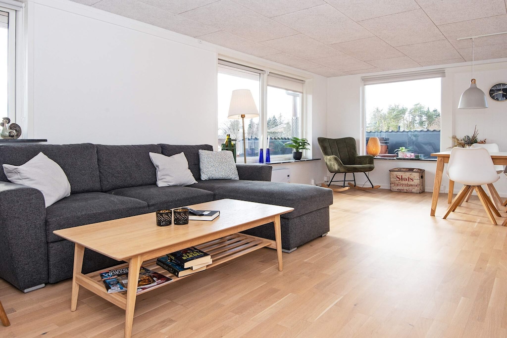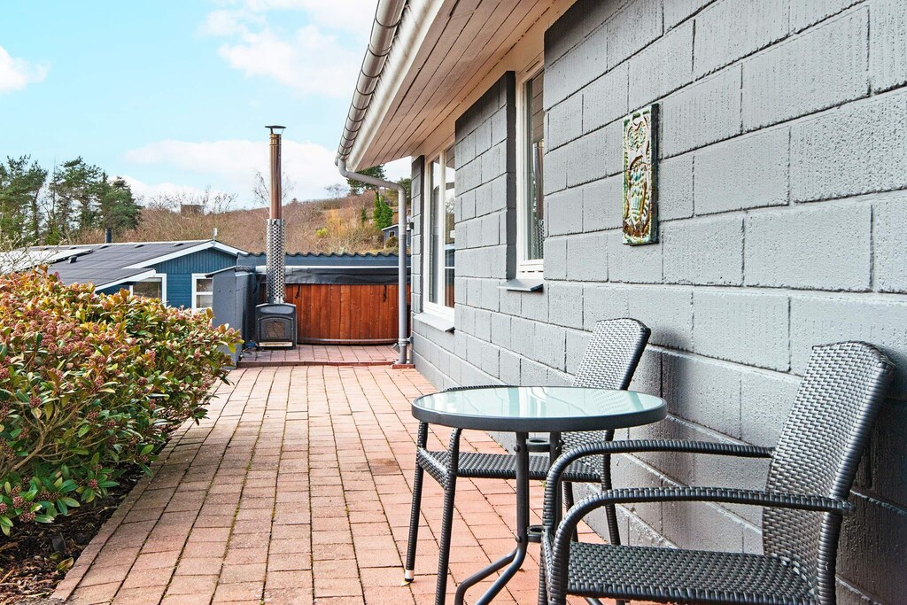This inviting holiday home near Ebeltoft is perfect for a relaxing getaway, featuring an outdoor hot tub for unwinding and enjoying peaceful moments. Situated along the access road to the charming harbor town, guests are just a short walk from the picturesque old town with its cozy restaurants, cafés, and shops. The beach is also within walking distance, offering easy access for sunbathing, swimming, or leisurely strolls along the shore. Inside, the property features an entrance hall with access to a bathroom with WC, and two comfortable bedrooms located on the left side. The open-plan living and dining area provides a welcoming space for family gatherings, complete with a wood-burning stove to warm cooler evenings. The fully integrated kitchen is practical for preparing meals, while a Smart TV with Chromecast allows guests to stream their favorite shows or movies. Outside, a large terrace stretches along the length of the house, perfect for sunbathing, relaxing, or enjoying meals outdoors. A spacious lawn offers plenty of room for children to play, for outdoor games, or simply to soak up the sun. With its combination of indoor comfort, outdoor relaxation, and proximity to both the beach and Ebeltoft’s charming town center, this holiday home ensures a memorable and carefree stay. Rental is not permitted to youth groups, guaranteeing a peaceful and family-friendly environment.A refundable deposit might be charged closer to your check-in date. The security deposit ensures a smooth stay and covers any additional services or consumption charges.This deposit covers utilities consumed during your stay and any additional services that may be taken.The final amount will be adjusted based on actual meter readings, actual usage of extra services, and any remaining balance will be refunded within 21 days after checkout.This deposit simply acts as a prepayment for charges that you would anyways pay for, ensuring a seamless stay and check-out experience.
