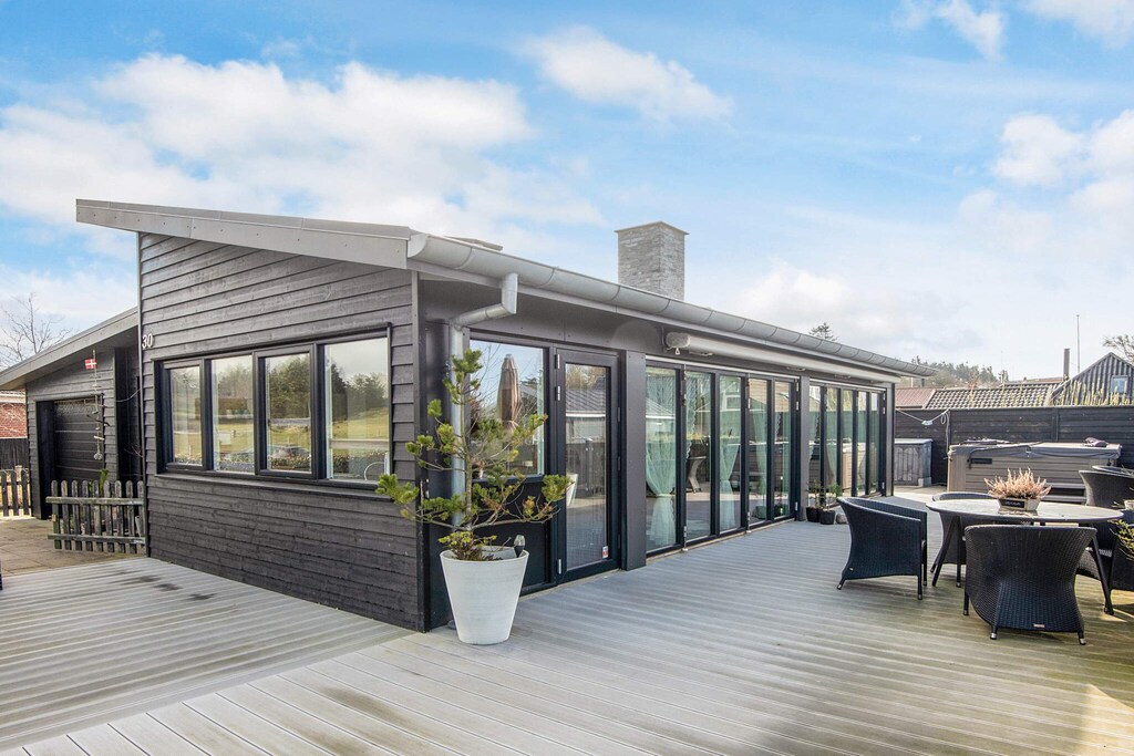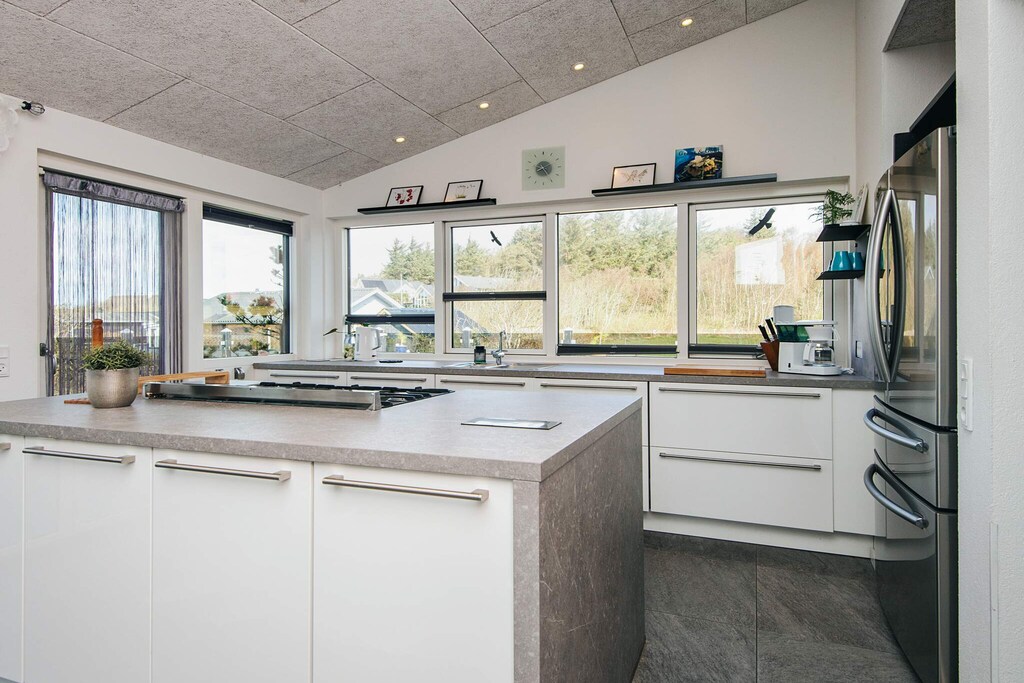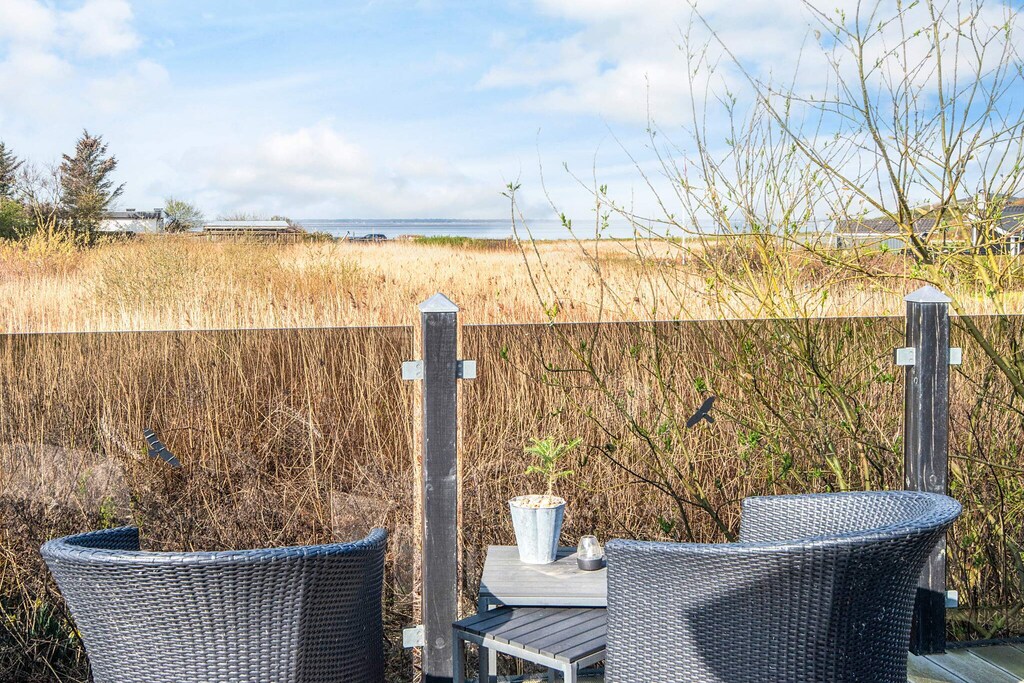 This elevated holiday home offers a fantastic location with breathtaking panoramic views over Ho Bay and towards the island of Fanø. From the terrace, the living room, and even the kitchen, you can enjoy the beautiful natural scenery and ever-changing light over the water. The setting creates a unique holiday atmosphere where you can truly relax and unwind. The house itself is tastefully furnished and thoughtfully equipped to provide both comfort and style. The modern kitchen includes a gas stove and all the essentials for preparing meals at home, while the adjoining dining area makes it easy to enjoy meals together with family or friends. The bright and cozy living room is designed with large windows that frame the stunning views and fill the space with daylight. There are two comfortable bedrooms, providing restful sleeping arrangements for your stay, as well as a well-appointed bathroom. Outside, generous terrace areas facing southwest and west invite you to spend time in the fresh air, whether relaxing with a coffee in the morning sun or watching the sunset in the evening. A special highlight is the outdoor hot tub for up to five people, perfect for a soothing soak after a day of exploring the surrounding area. Imagine enjoying a bubbling bath under the open sky, with stars shining above and the calm landscape around you — a truly memorable experience. This holiday home combines modern comfort, scenic views, and unique features to create the perfect setting for a relaxing getaway. Please note: rental to youth groups is not permitted.A refundable deposit might be charged closer to your check-in date. The security deposit ensures a smooth stay and covers any additional services or consumption charges.This deposit covers utilities consumed during your stay and any additional services that may be taken.The final amount will be adjusted based on actual meter readings, actual usage of extra services, and any remaining balance will be refunded within 21 days after checkout.This deposit simply acts as a prepayment for charges that you would anyways pay for, ensuring a seamless stay and check-out experience.