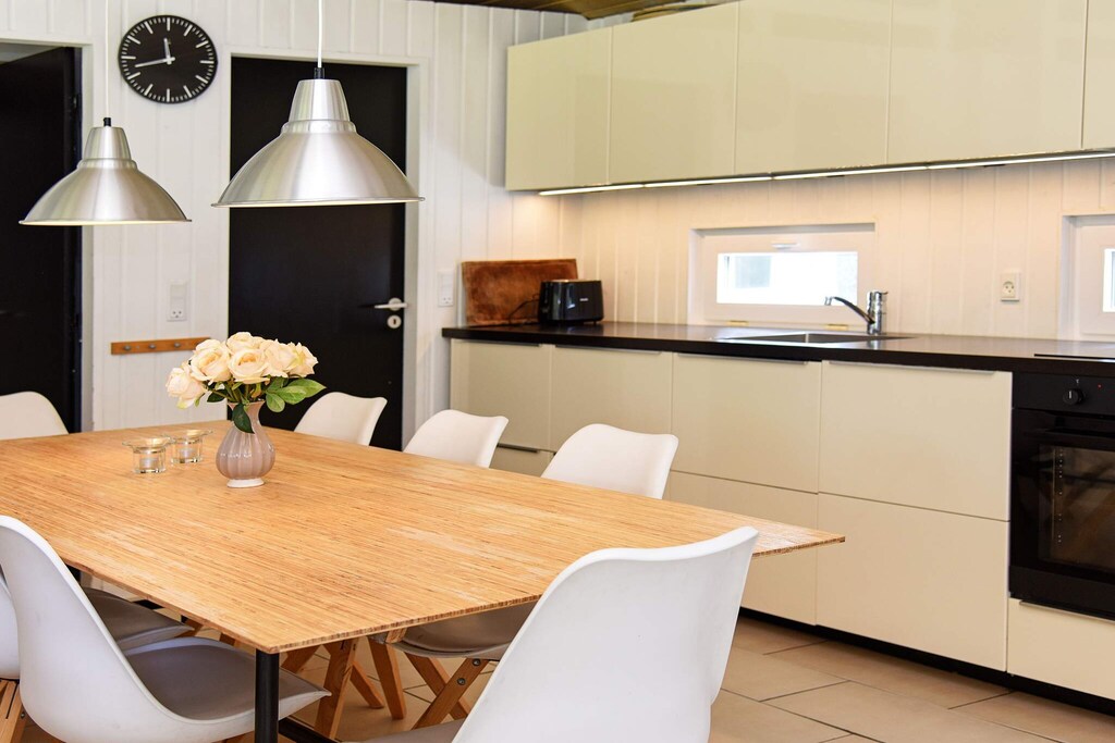 This holiday home with a hot tub, sauna, and various activities is located on a 2300 m² natural plot with trees, not far from the beautiful beach at Sønderho. The cottage is 175 m2 and can accommodate 12 people.The house was built in 1986 and completely renovated in 2016. Today, it is a modern and bright cottage with table tennis, billiards, and table football. Large, combined kitchen/family room/living room equipped with ceramic hobs, separate oven with grill and convection function, extractor hood, and dishwasher. Large dining area/living room with direct access to the large, open/covered terrace. The living room is equipped with a TV with both Danish and German channels, a stereo system, and high-quality Danish furniture. Large activity room with a combination table where you can play billiards and table tennis, and there is also a foosball table. Wi-Fi is installed in the house. Two large bathrooms, both with shower cubicles and underfloor heating, and there is both a washing machine and dryer. For relaxation and well-being, there is a spa bath and sauna. An air-to-air heat pump has also been installed. There are five bedrooms, three with double beds, one with a bunk bed for two people, and one with two single beds. There is also a large loft with two sleeping platforms connected to the large living room. For younger guests, there is both a high chair and a cot. The house is secluded on a large natural plot, offering ample opportunity to enjoy the nature on Fanø. There is a charging point for electric cars. It is only about 1000 m to one of Fanø's best beaches. Not available for rental to youth groups.A refundable deposit might be charged closer to your check-in date. The security deposit ensures a smooth stay and covers any additional services or consumption charges.This deposit covers utilities consumed during your stay and any additional services that may be taken.The final amount will be adjusted based on actual meter readings, actual usage of extra services, and any remaining balance will be refunded within 21 days after checkout.This deposit simply acts as a prepayment for charges that you would anyways pay for, ensuring a seamless stay and check-out experience.