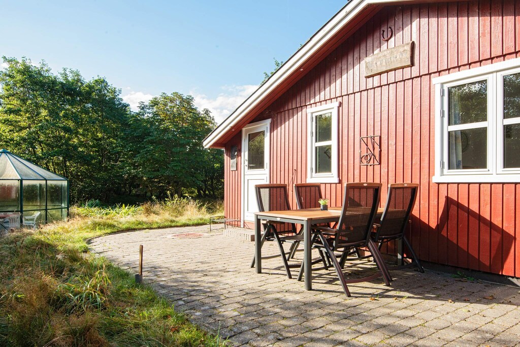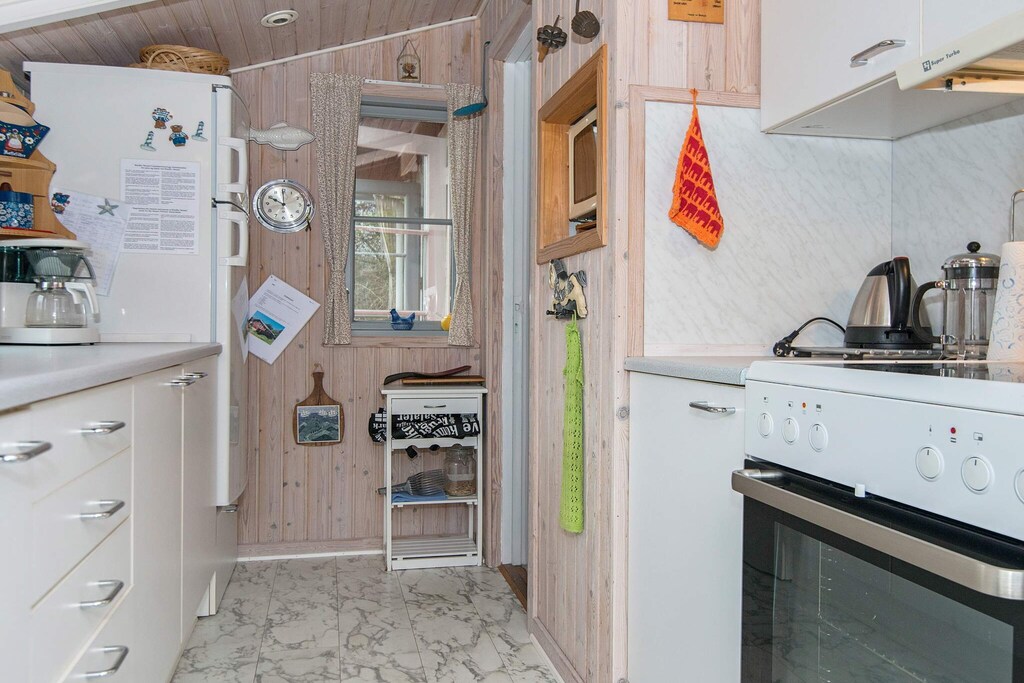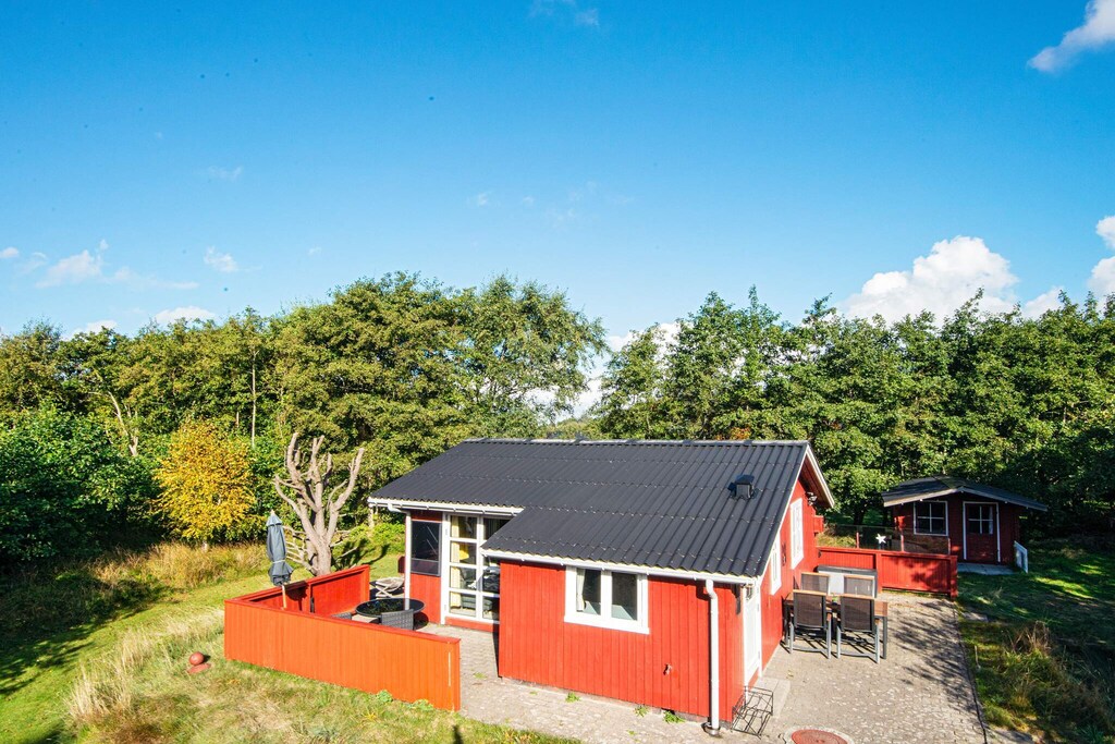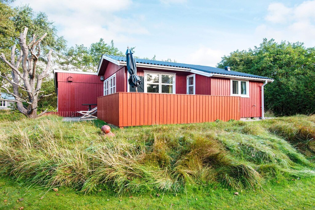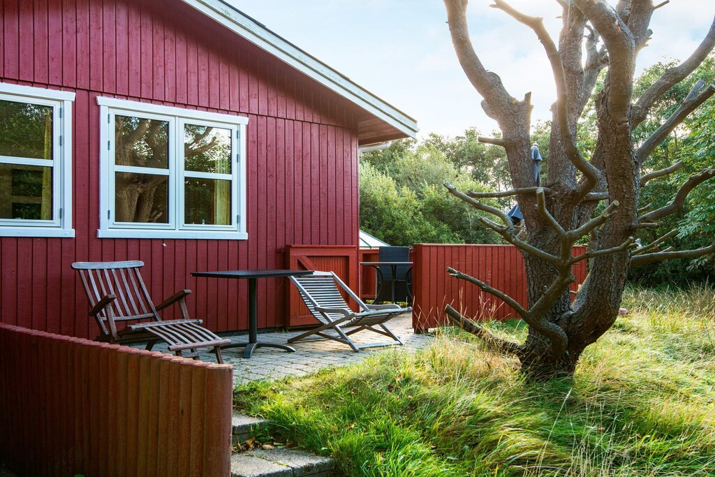 This charming cottage by Rindby Strand is within walking distance to the beach and shopping. The cottage's 60 m2 is best suited for two adults and two children. During the summer months, it is also possible to use the house's unheated annex with the two extra beds. The kitchen is i.a. equipped with coffee machine, microwave, refrigerator with 10 L freezer and ceramic hobs. In the living room there is cable TV with Danish and German programs. The natural plot is completely undisturbed and is often visited by deer and rabbits that live freely on Fanø. Summer evenings can be enjoyed in the lovely glass pavilion in the middle of the grounds or on the terrace of the house. There is a barbecue available. There are good parking facilities directly at the house. Not for rent to youth groups.