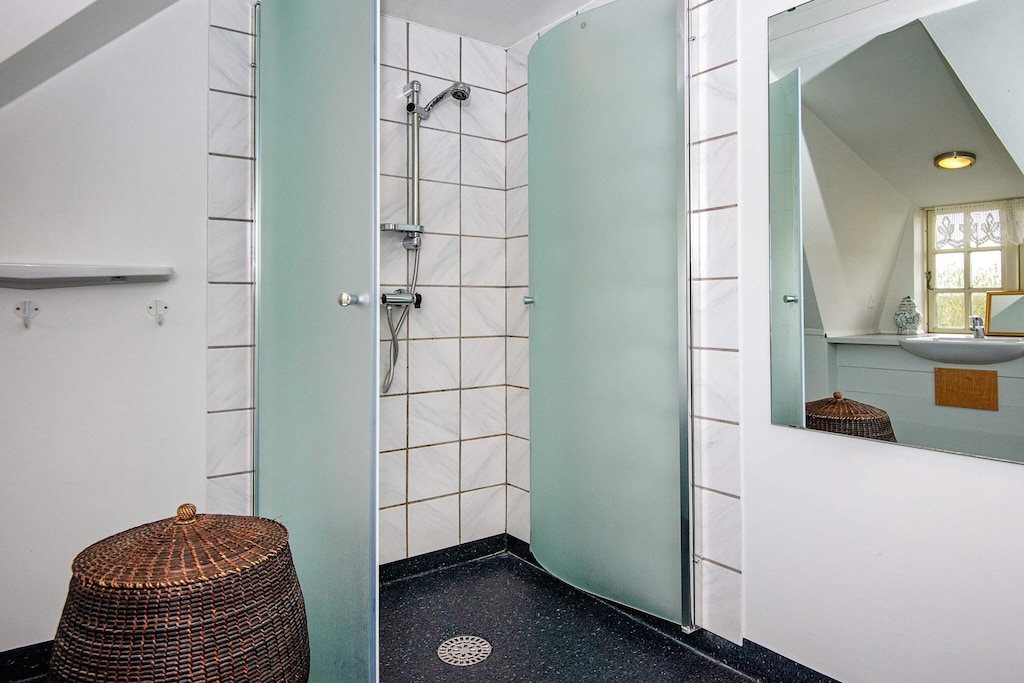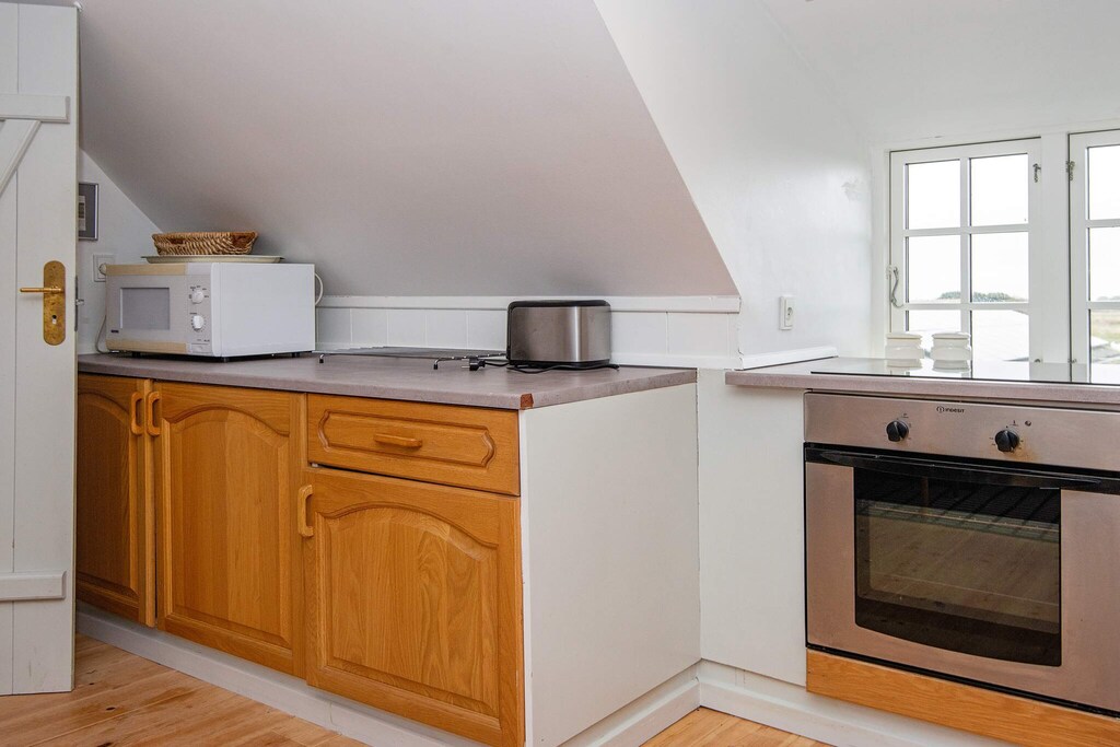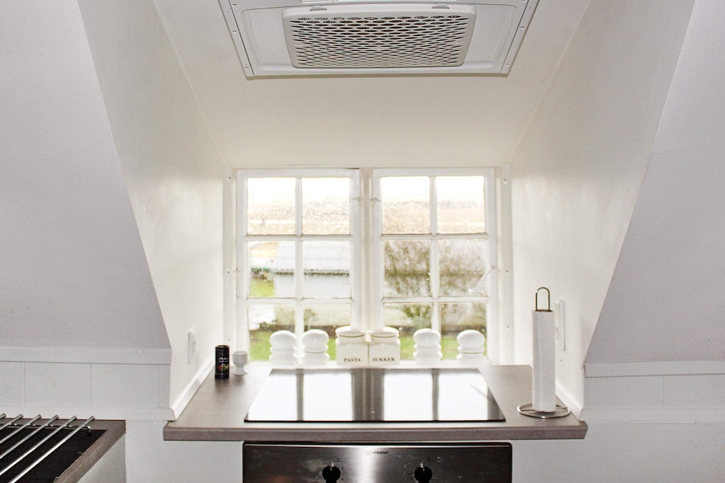 Apartment located on the 1st floor of old Fanø farm, where there is a view of the Wadden Sea and the old town Sønderho. On the ground floor there is an entrance hall with washer and dryer and entrance to the 1st floor. On the 1st floor there is a kitchen in open connection with the living room. In the kitchen, the stove is located in the window niche, so you can enjoy the view of the area while you cook. The bathroom sink is also located in the window niche, so you can also enjoy the view of the area. The 2 bedrooms are located at each end of the apartment. One room has access to a small balcony from which you can see the Wadden Sea. There is its own small terrace for the apartment. Not for rent to youth groups.