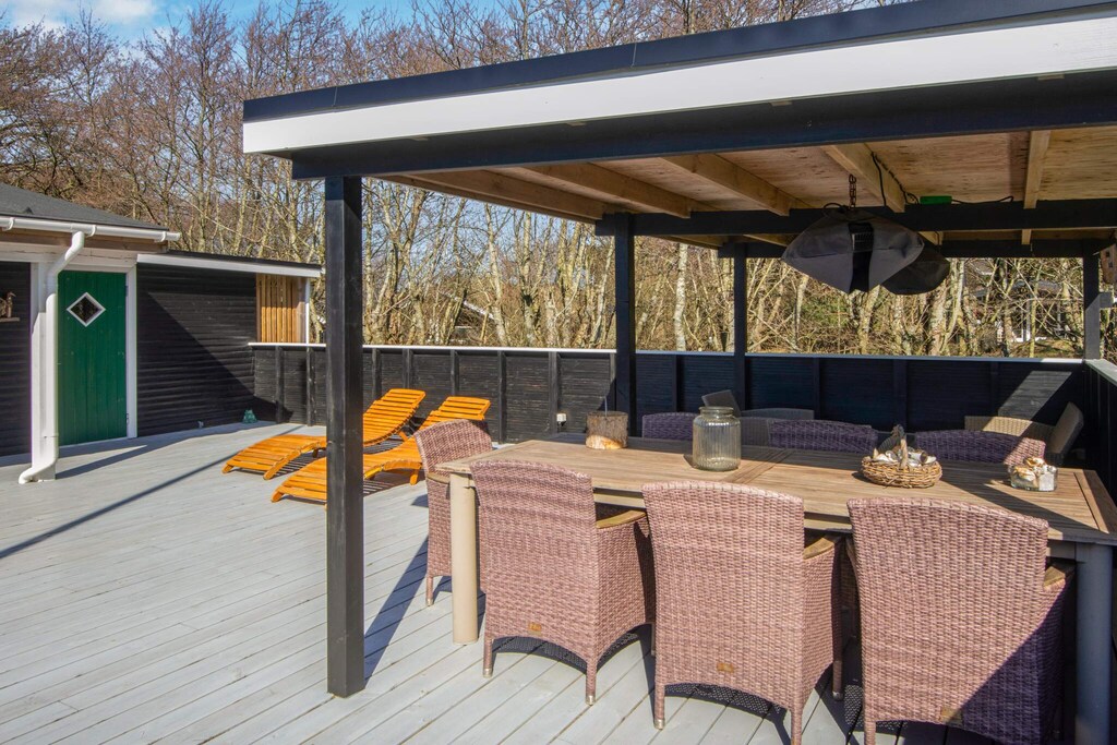 One small dog allowed. A really lovely and cozy cottage on Fanø on a large and lovely enclosed natural plot with plenty of space for play and games. Charming and cozy log cabin with 3 bedrooms for 5 people. Cozyly furnished with a lovely bathroom, a nice kitchen, and 2 charming living rooms. One with a wood-burning stove for cool days. The other very bright with windows all around and access to the terrace. There is a large and lovely screened terrace that is partially covered. A lovely holiday home on the West Coast in a great location in a quiet area. The house had a new bathroom installed in 2016 and underwent a major renovation with an extension and new terrace in 2022. There is a heat pump for energy-efficient heating. It has become a real gem. Free final cleaning!A refundable deposit might be charged closer to your check-in date. The security deposit ensures a smooth stay and covers any additional services or consumption charges.This deposit covers utilities consumed during your stay and any additional services that may be taken.The final amount will be adjusted based on actual meter readings, actual usage of extra services, and any remaining balance will be refunded within 21 days after checkout.This deposit simply acts as a prepayment for charges that you would anyways pay for, ensuring a seamless stay and check-out experience.