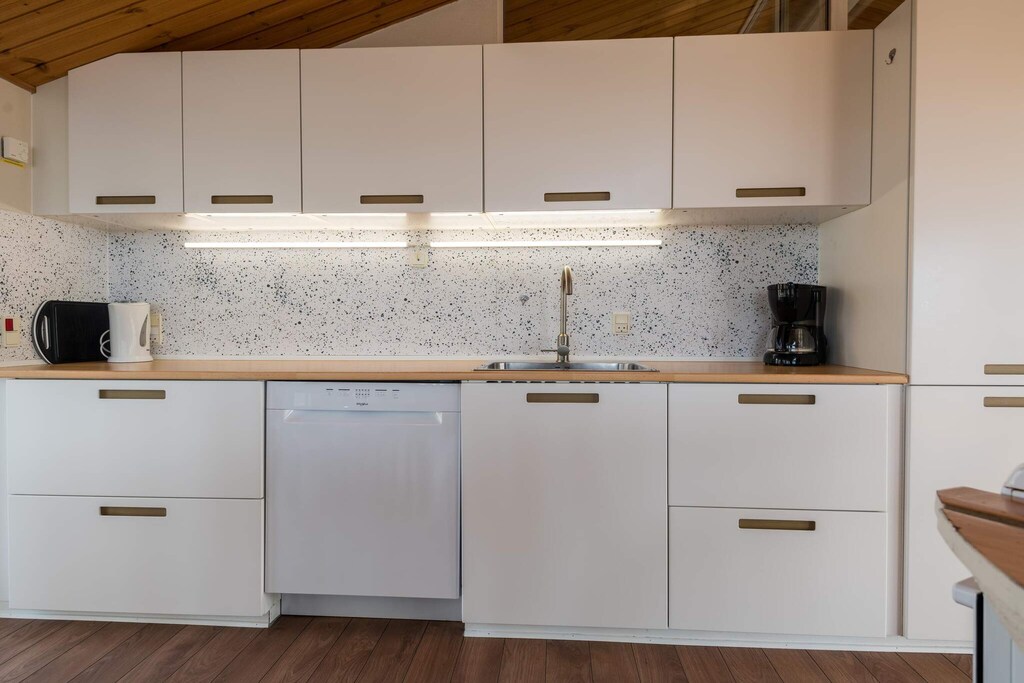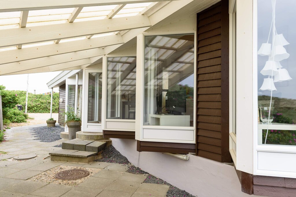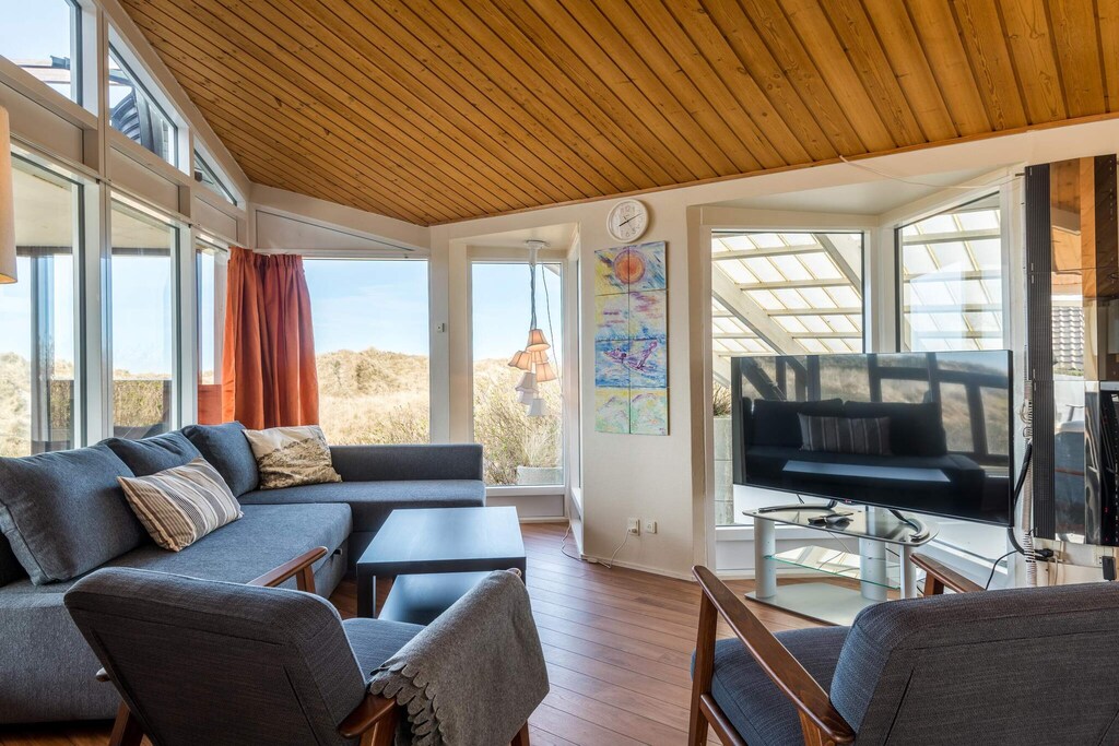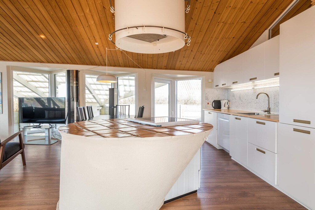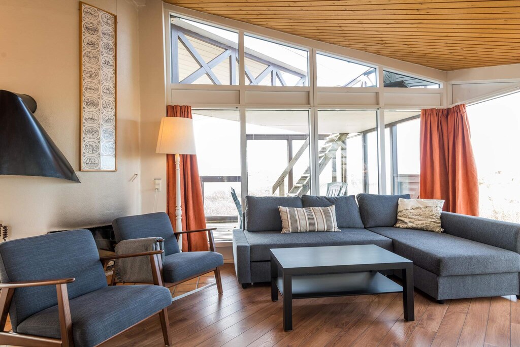 Untraditionally architect-designed cottage from the 80's. This cottage is located in the first dune row next to the North Sea and has everything in modern conveniences. There are several fireplaces in the centrally located chimney, large spa for 4 people and sauna. Entrance to sauna from tarresse. is a fantastic view from the small roof balcony.The cottage has its very own charm and is undisturbed surrounded by the dunes.From the adjoining garage there is direct access to the holiday home.The cottage is not suitable for small children.The house is electrically heated and has exchange systems, it can give an increased electricity consumption, if you want to make use of the large spa, it can also increase the power consumption.Holiday on Fanø.Nice cottages in Rindby on the West Coast! MAX 1 DOG.Free final cleaning!