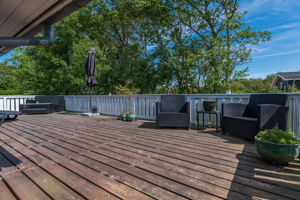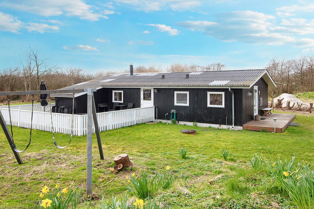 MAX 1 DOG - This cozy vacation home on Fanø has a bathroom that was renovated in 2021. The house is bright and attractive with white-painted walls and ceilings and lovely furniture. The kitchen is open to the living room, which has a nice dining area and a lovely wood-burning stove that is sure to create a cozy atmosphere. 3 bedrooms. A really cozy house. The enclosed terrace extends along two sides of the house. There is a swing set, so you can find shelter and sun, as well as plenty of space for playing and ball games. The property is surrounded by trees and bushes, so you can sit in the sun or shade, depending on what you prefer. The area has a rich wildlife that often comes to visit. Free final cleaning.A refundable deposit might be charged closer to your check-in date. The security deposit ensures a smooth stay and covers any additional services or consumption charges.This deposit covers utilities consumed during your stay and any additional services that may be taken.The final amount will be adjusted based on actual meter readings, actual usage of extra services, and any remaining balance will be refunded within 21 days after checkout.This deposit simply acts as a prepayment for charges that you would anyways pay for, ensuring a seamless stay and check-out experience.