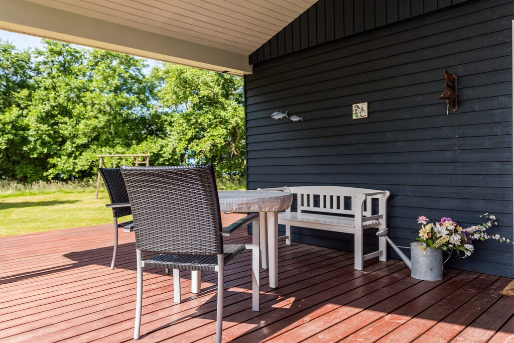On a large lovely sheltered natural plot in Rindby on Fanø with plenty of space for play and games is this nice and very well-kept cottage with plenty of space for 6 people. The cottage has 3 good bedrooms, a large nice bathroom with spa, a living area with well-equipped kitchen and direct access to a nice morning terrace, dining area and a cozy living room with access to a beautiful screened and covered terrace. The house has a patio heater. A nice cottage on Fanø with everything in equipment and good details, such as. wood stove and energy-efficient heat pump that provides heating on cool days. This nice cottage is centrally located in Rindby - quiet and a short distance to most things. Free final cleaning!