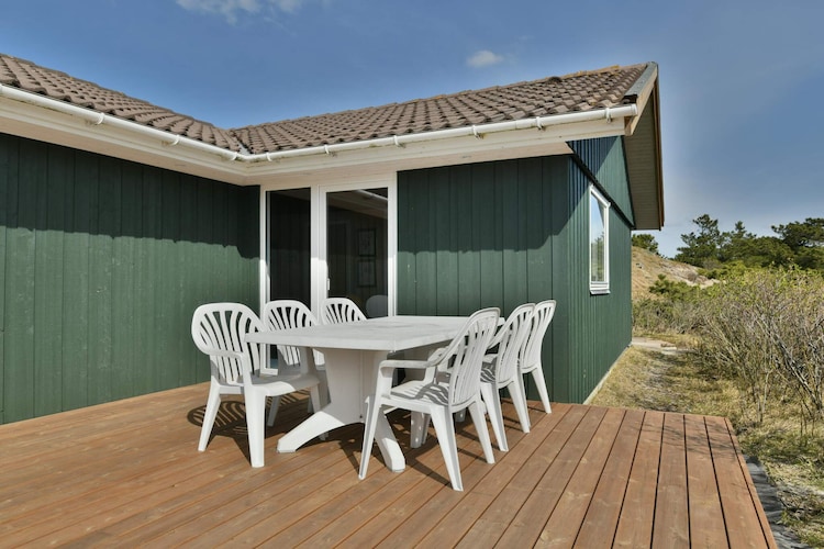Changeover day Friday - The large 1800m2 large plot is fantastic. From the large dune next to the house there is a fantastic view of the North Sea. The house has a dining area in connection with both the kitchen and the living room. There is a new wood burning stove in the living room for cozy moments. Lovely conservatory / conservatory with access to the large new east-facing terrace. Bathroom with shower. 3 bedrooms. One with double bed, one with 2 single beds and one with a bunk bed. In the annex there is a washing machine. A nice and quiet area on a small slip road without traffic. No Youth Groups. FREE Final cleaning.