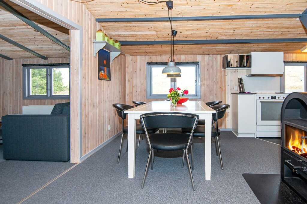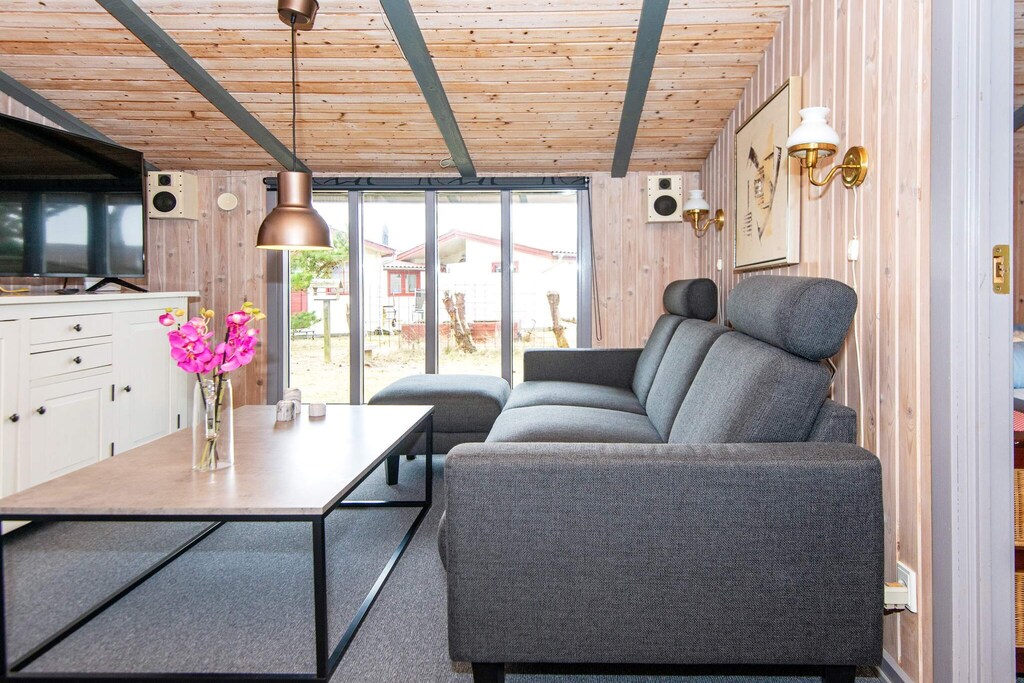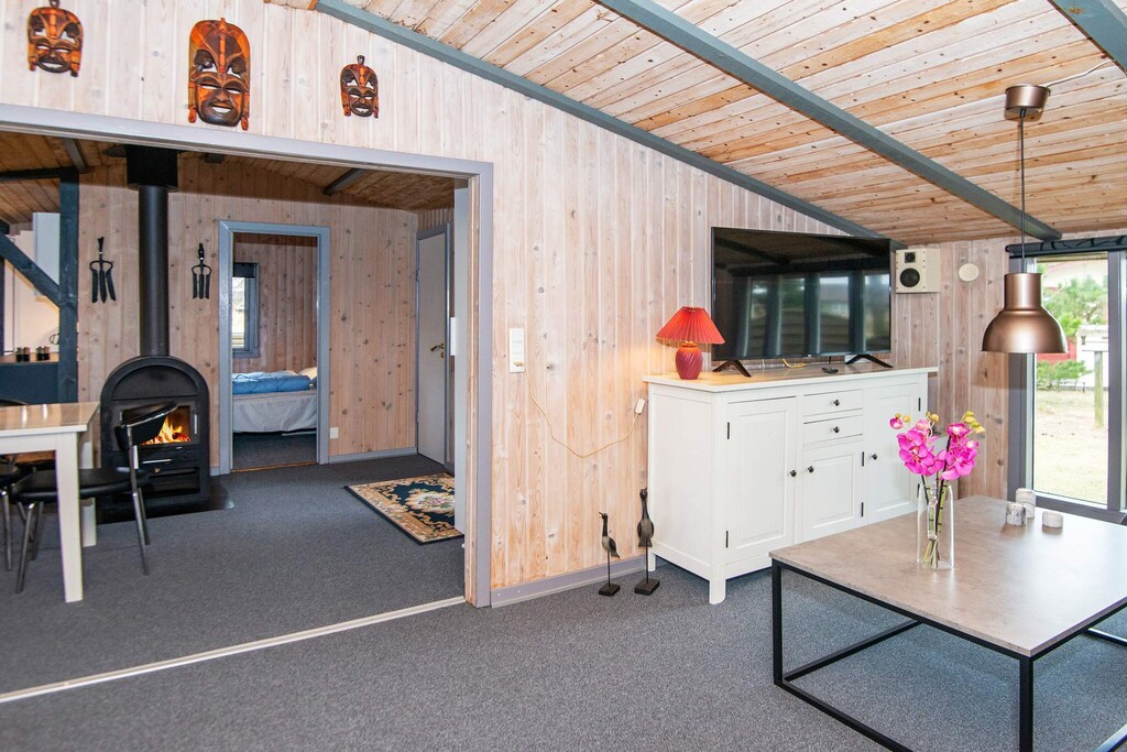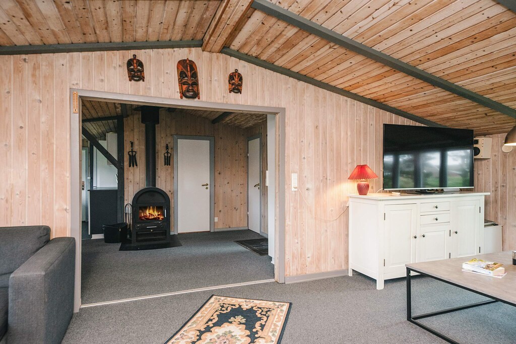 Det ligger rigtig dejligt, Huset er velfungerende, TV er fremragende, Velplaceret terrasse i læ for vinden, Dobbelt senge hvor man kun kan komme i fra en side er dog ikke godt,
