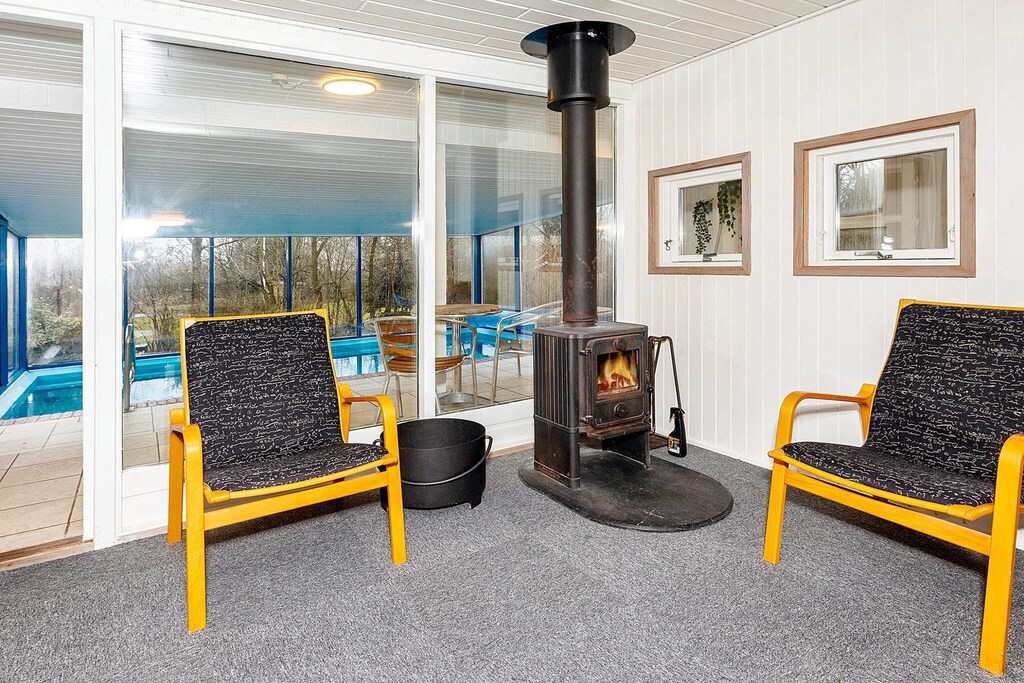 Holiday cottage with swimming pool located on a 1250 m² beautiful natural plot approx. 900 m from a good and child-friendly beach. The house has a cosy and bright atmosphere throughout and on the terraces you can enjoy the sun all day. The pool room invites you for relaxation, like the rest of the interior design is very practical and functional. The centre of the house is the cosy living room with wood-burning stove and good furniture. Next to this is the bright kitchen with dining area, and from here ypu have direct access to the pool room. The house has 3 bedrooms and a large bathroom from which you have access to the sauna. During the summer there is a small market approx. 500 m from the house.A refundable deposit might be charged closer to your check-in date. The security deposit ensures a smooth stay and covers any additional services or consumption charges.This deposit covers utilities consumed during your stay and any additional services that may be taken.The final amount will be adjusted based on actual meter readings, actual usage of extra services, and any remaining balance will be refunded within 21 days after checkout.This deposit simply acts as a prepayment for charges that you would anyways pay for, ensuring a seamless stay and check-out experience.