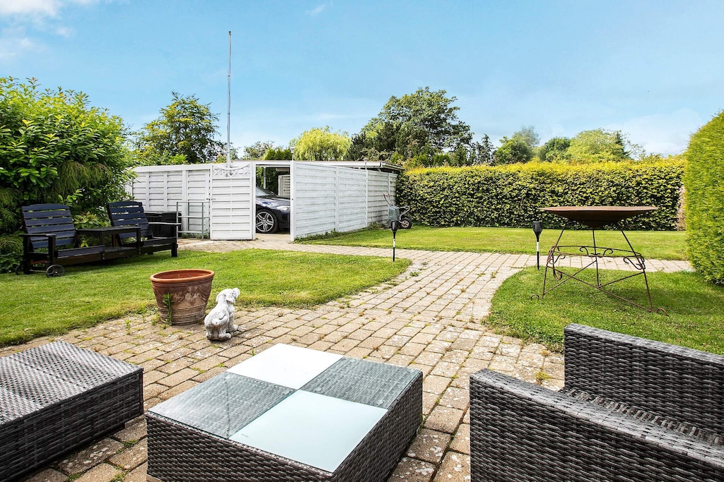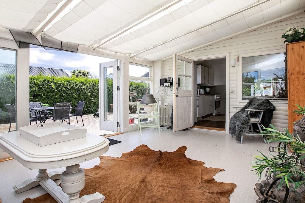 Holiday home located only approx. 50 meters from the water at Faxe Ladeplads in a beautiful area with a child-friendly beach and only approx. 100 m to the marina and cozy restaurant. The cottage is well furnished with two large bedrooms, open kitchen and a nice living room. From the kitchen you can go directly to a beautiful, secluded conservatory. The plot itself is an extremely well-landscaped garden with lots of cozy nooks and terraces, where you can enjoy enjoying the sun, grilling and relaxing. For the kids there is a swing, soccer goal and sandbox. Furthermore, a nicely located annex with its own small cozy terrace. Not for rent to youth groups.