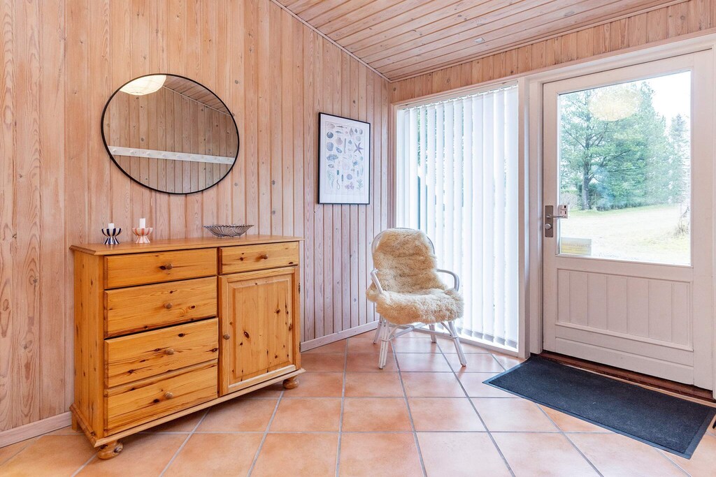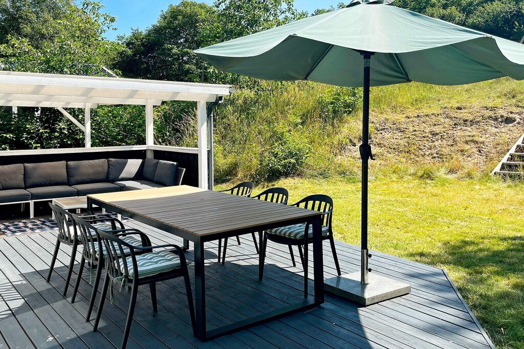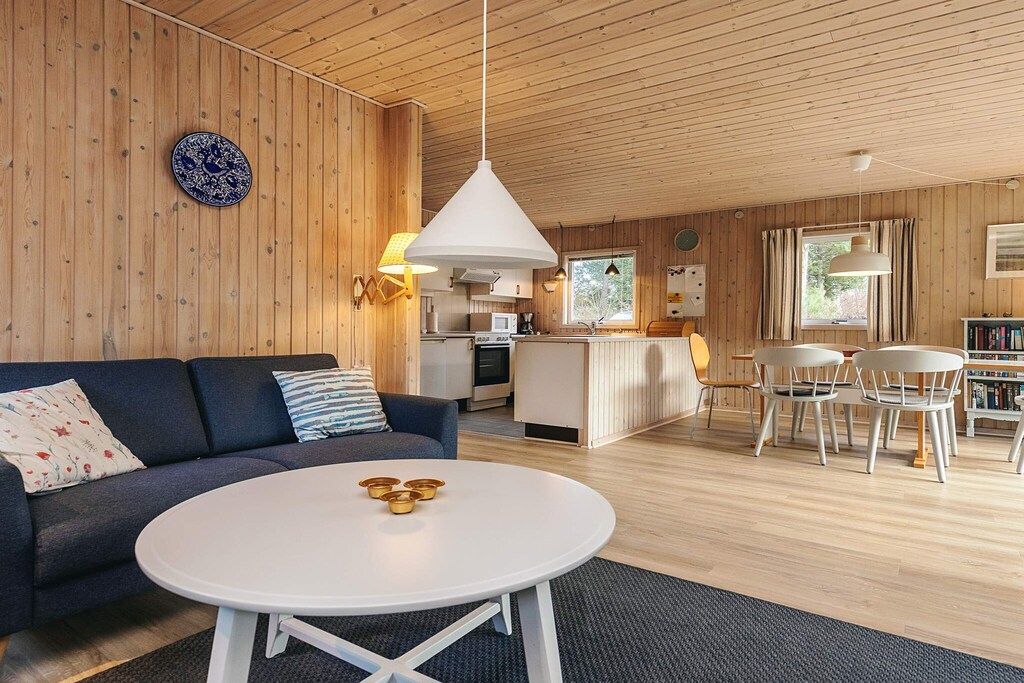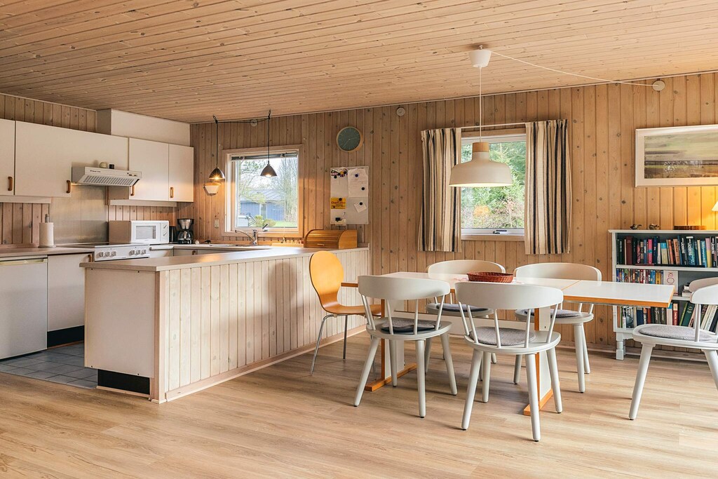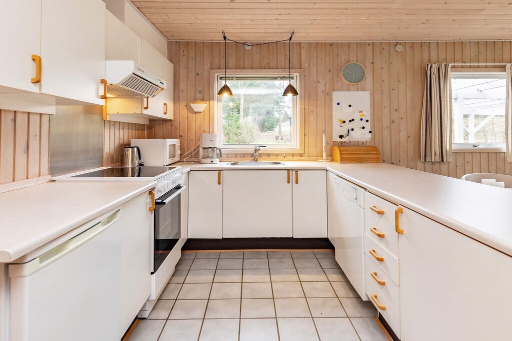 Holiday home located on 1300 m2 scenic holiday home plot by Kollerup Strand. The house has a personal decor, which helps to create the framework for a really good holiday. For the cozy evening hours, there is a wood burning stove in the living room as well as a TV with several different channels. There is a combined washer and dryer. The kitchen is in open connection with the living room and dining area. Outside there is a nice terrace, of which approx. 10 m2 is covered. Here is the opportunity to relax in the sun or shade as well as barbecue evenings. There is a large climbing tower with 2 swings and a slide in the garden, and you will find Hjortdal animal farm 9 km from the house. In the garden there is a large climbing tower with 2 swings and a slide and the animal farm Hjortdal is 9 km away from the house.